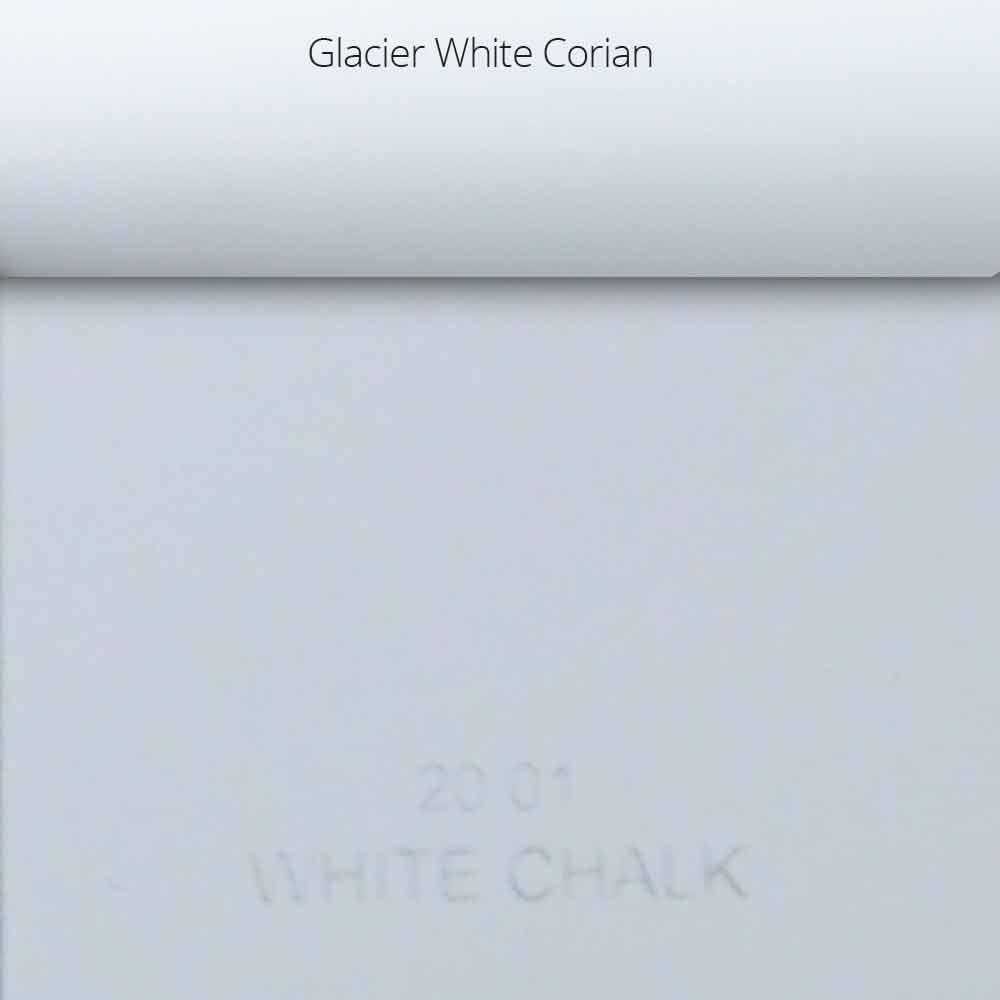 - White Chalk + Glacier White Corian®: acabado blanco mate con elementos DuPont ™ Corian® blancos;