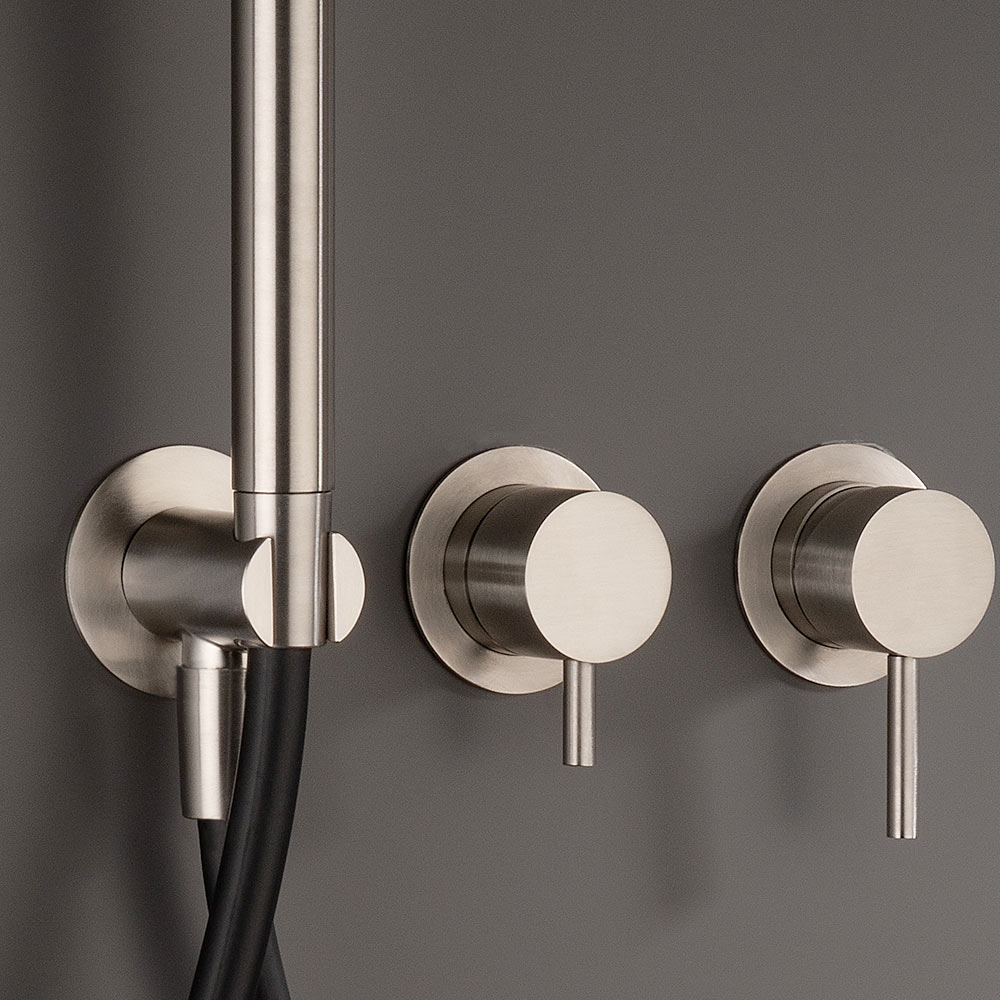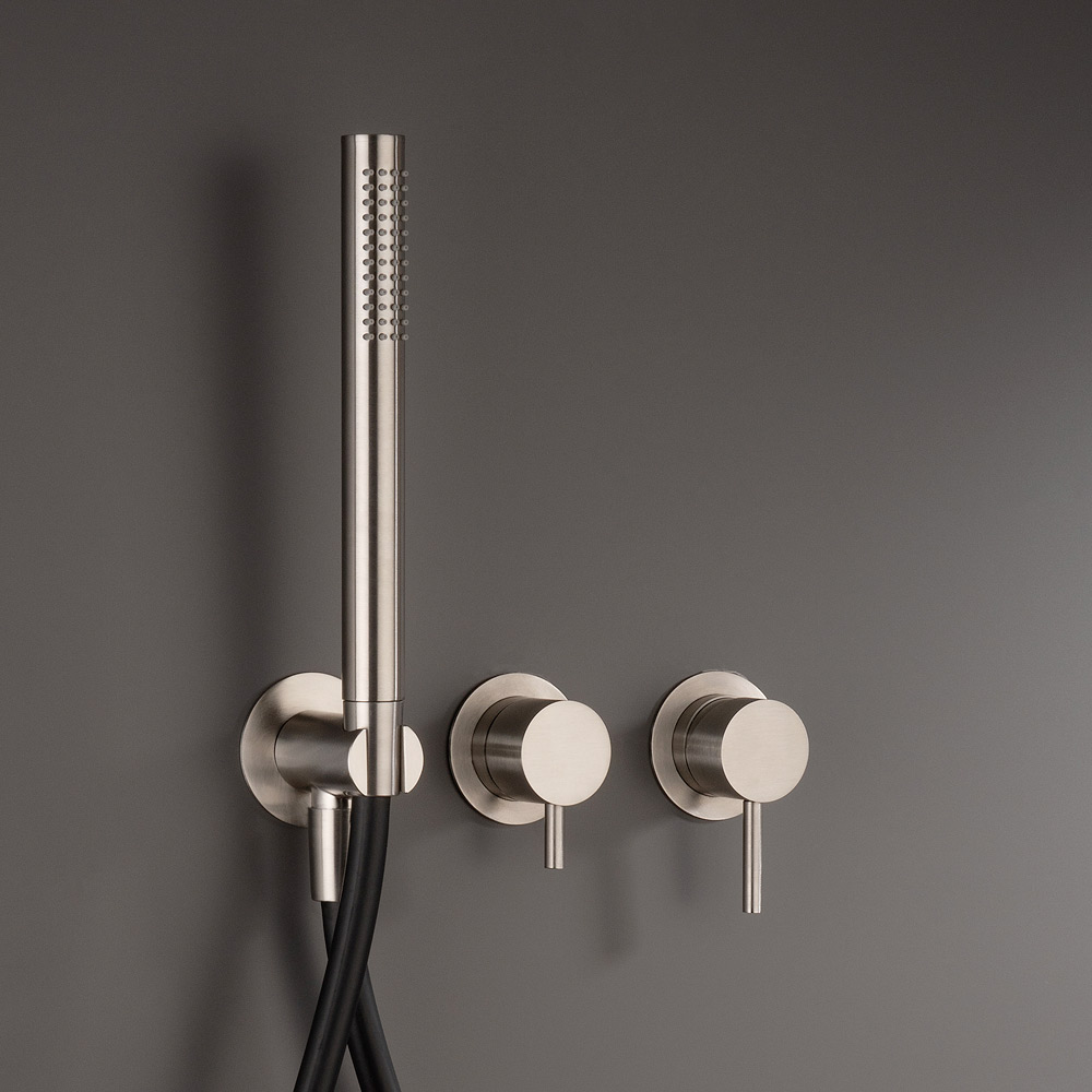 Mezclador de ducha empotrado con palanca desviadora de 3 vías y kit de ducha fabricado en acero inoxidable AISI 316L , material 100% reciclable, íntegramente Made in Italy.