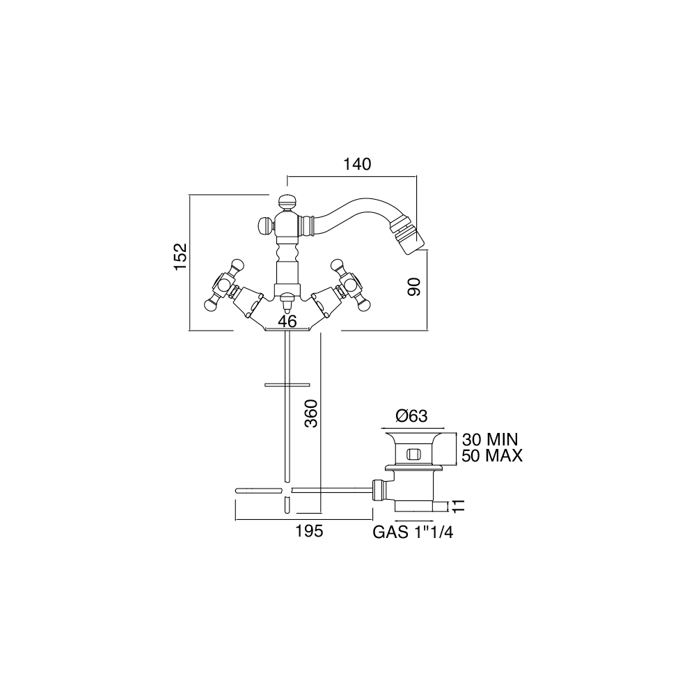 mezclador de bidé de un orificio con desagüe, fabricado en latón.