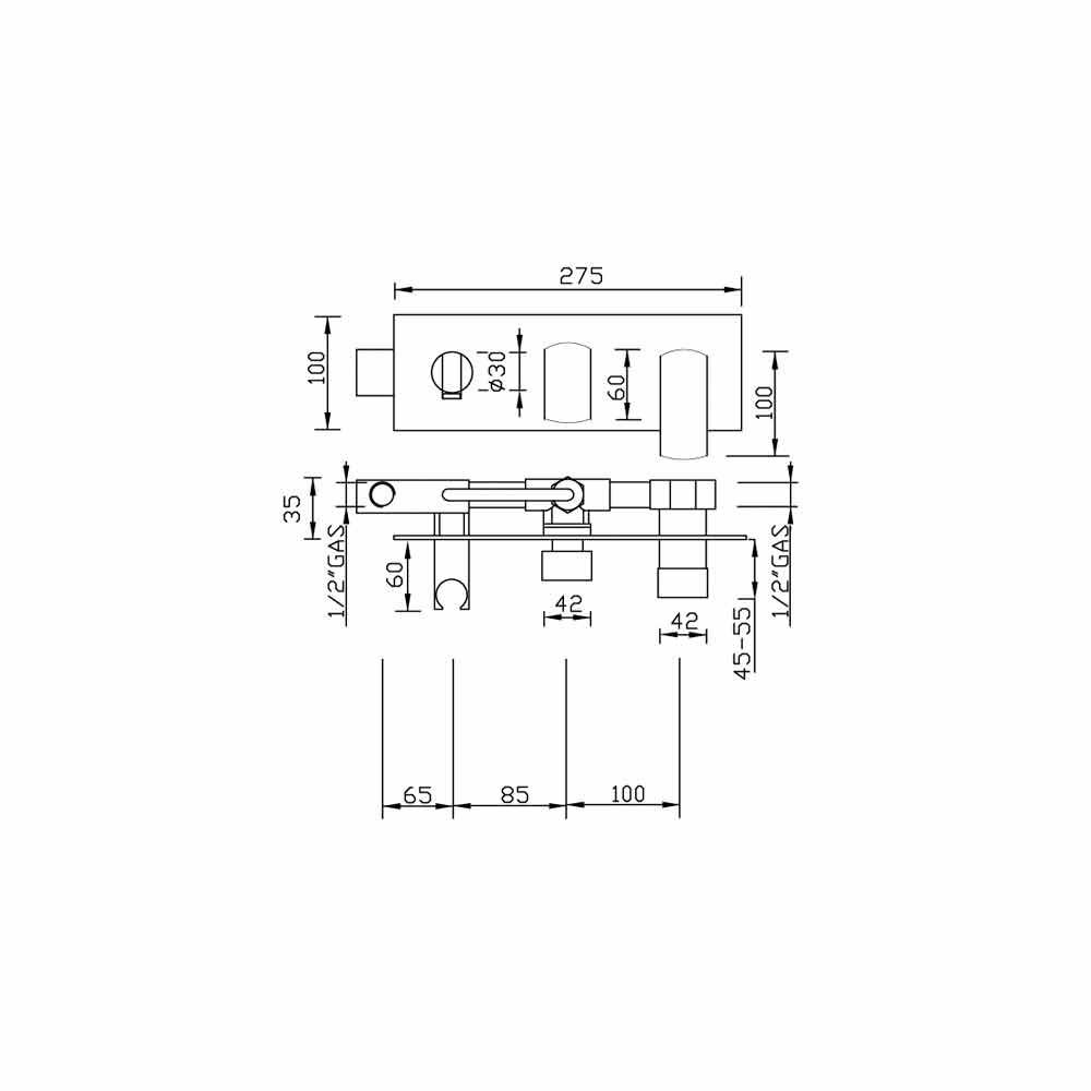 Mezclador de ducha empotrado de latón fabricado en Italia.