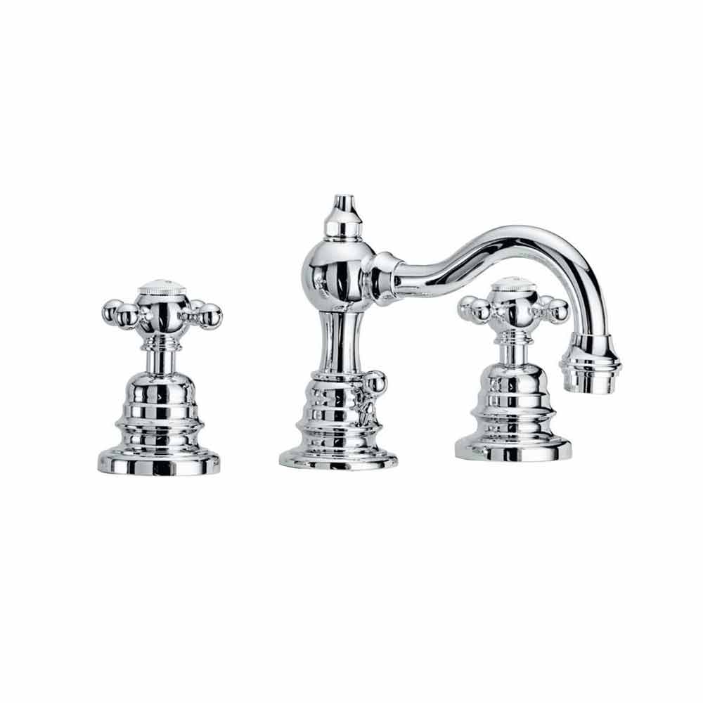 Mezclador de lavabo con 3 orificios de 130 mm de altura en latón cromado Made in Italy.