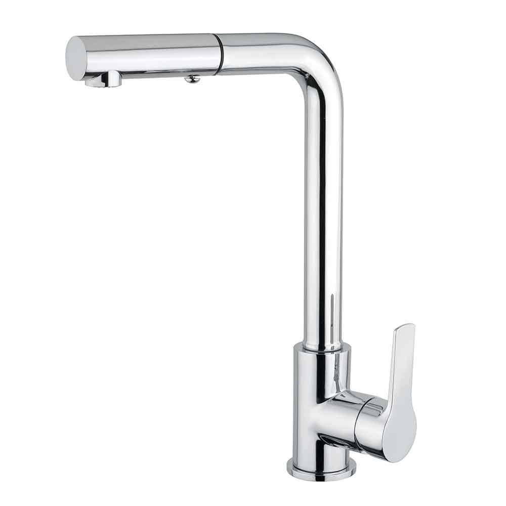 latón cromado . Gracias al caño regulable y la teleducha extraíble de 2 chorros, la