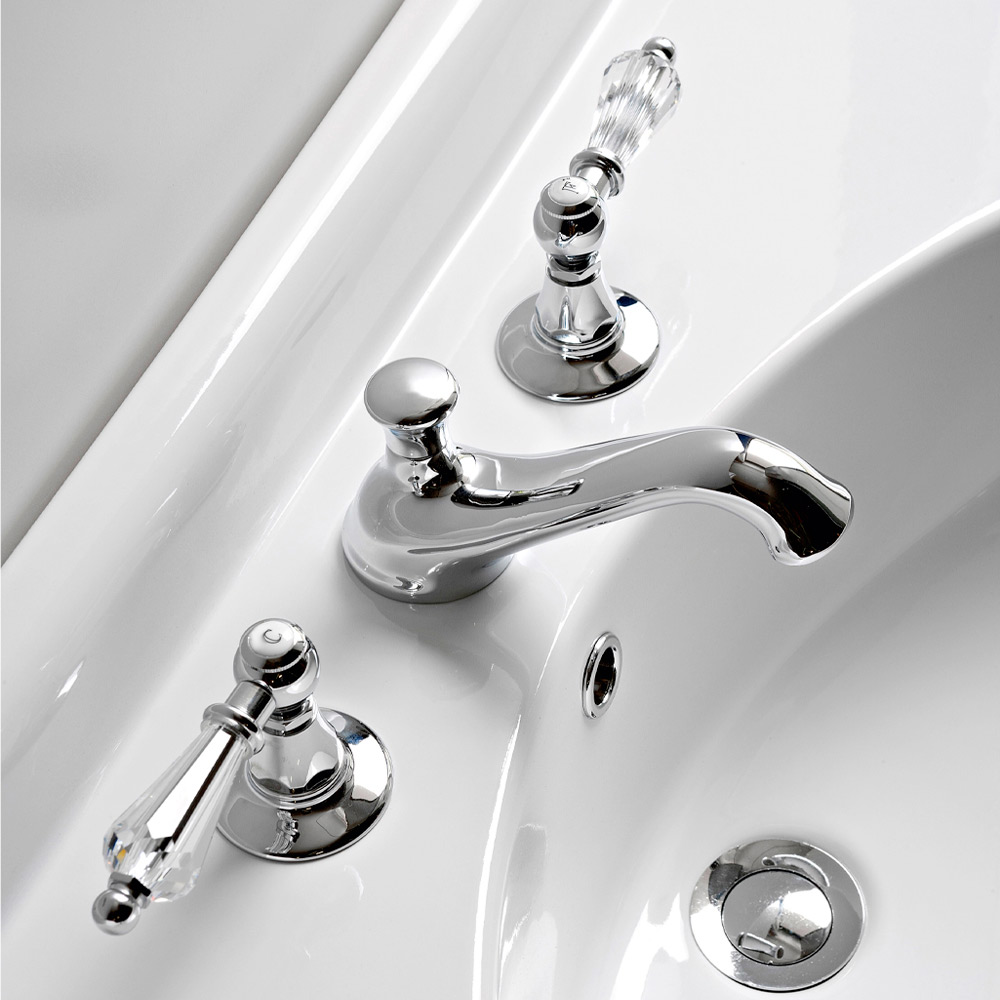 Grifo de lavabo de 3 orificios con desagüe de estilo clásico en latón artesanal con palancas, fabricado en Italia.