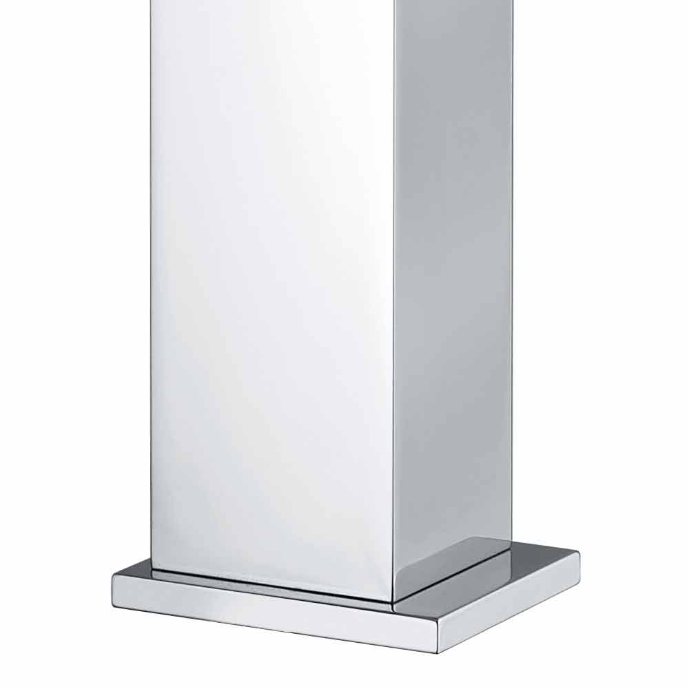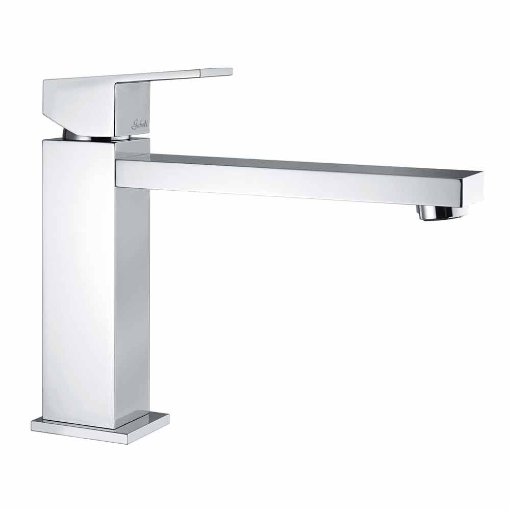 Mezclador de lavabo de baño de latón acabado cromado con caño 170 mm distancia entre ejes completo con cartucho abierto Kerox de Ø 25 mm. Las líneas cuadradas y los ángulos bien definidos dan un toque extremadamente moderno y refinado al producto y a toda la estancia, enriqueciéndola con estilo y un gusto completamente nuevo. Su sencillez y el maravilloso acabado cromado permiten que esta grifería forme parte de cualquier decoración de forma impecable, resultando discreta y elegante.