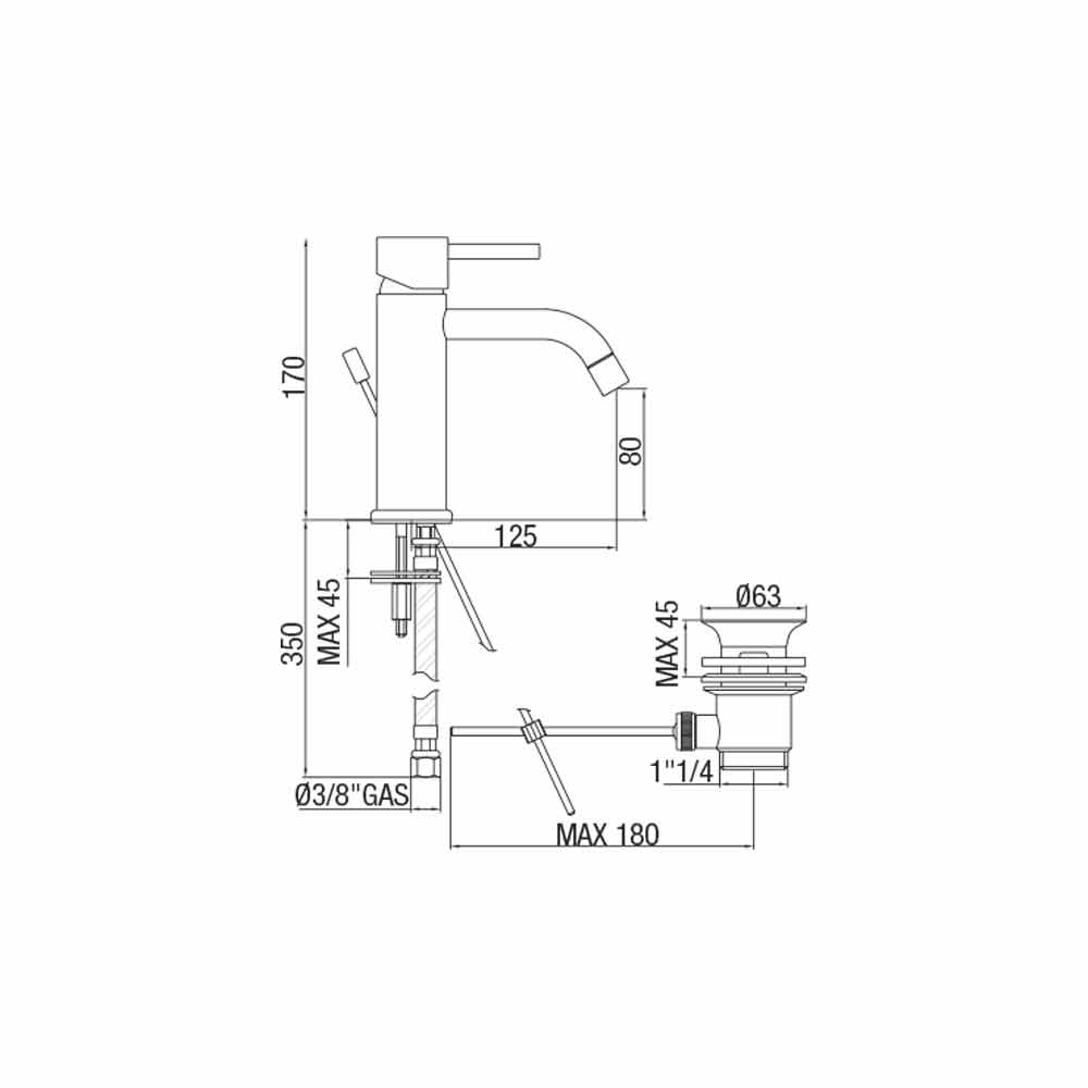 Mezclador de lavabo de baño moderno en acabado cromado Made in Italy.