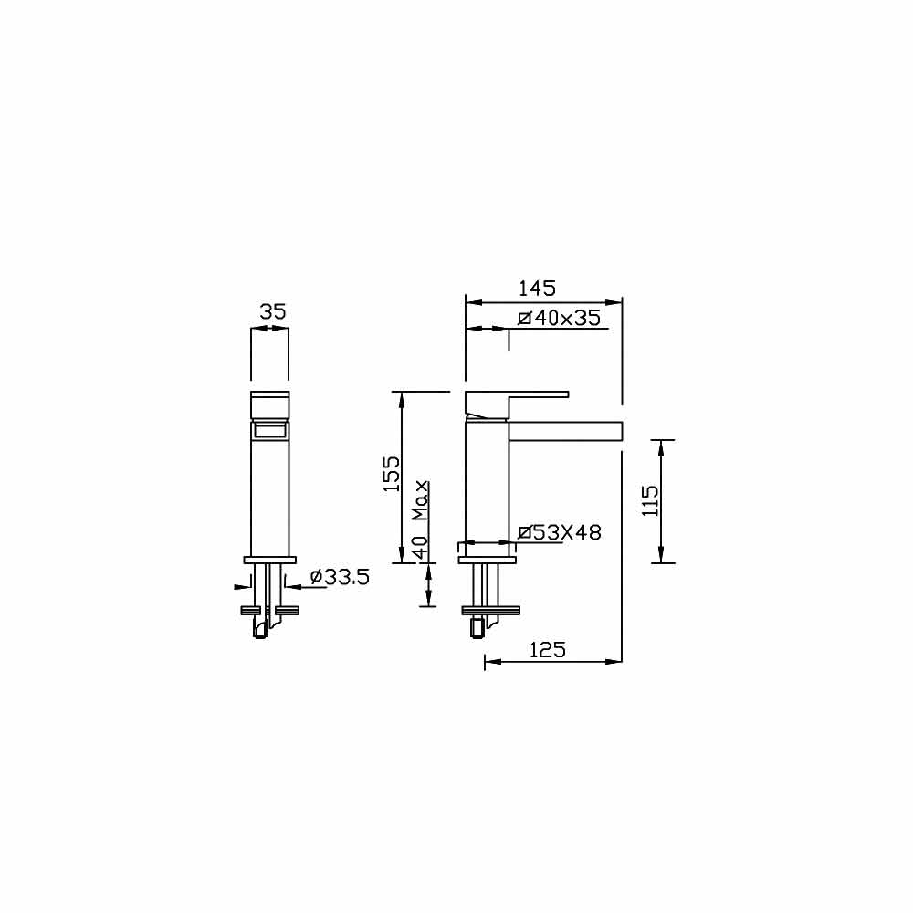 Mezclador completo de lavabo sin desagüe con flexibles con casquillo 3/8 hembra y kit de fijación.