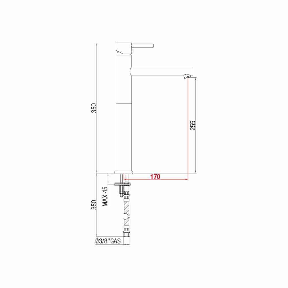Mezclador prolongado sin desagüe para lavabo en latón Made in Italy.