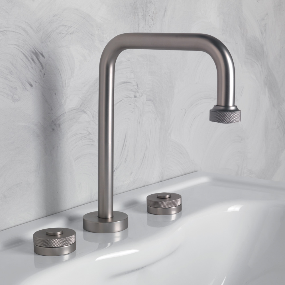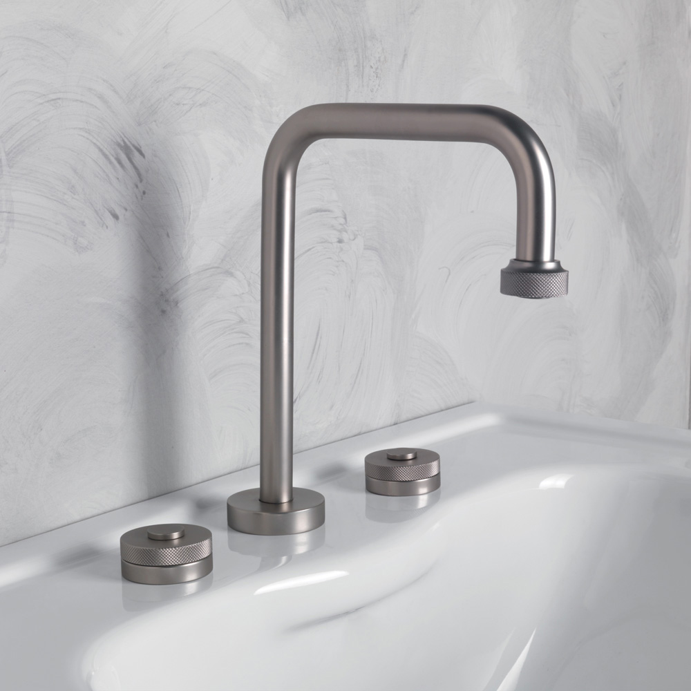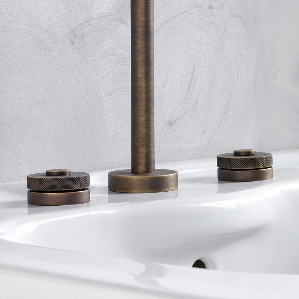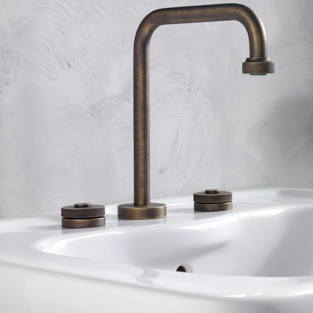 Moderno mezclador de lavabo de latón de 3 orificios con desagüe Made in Italy
