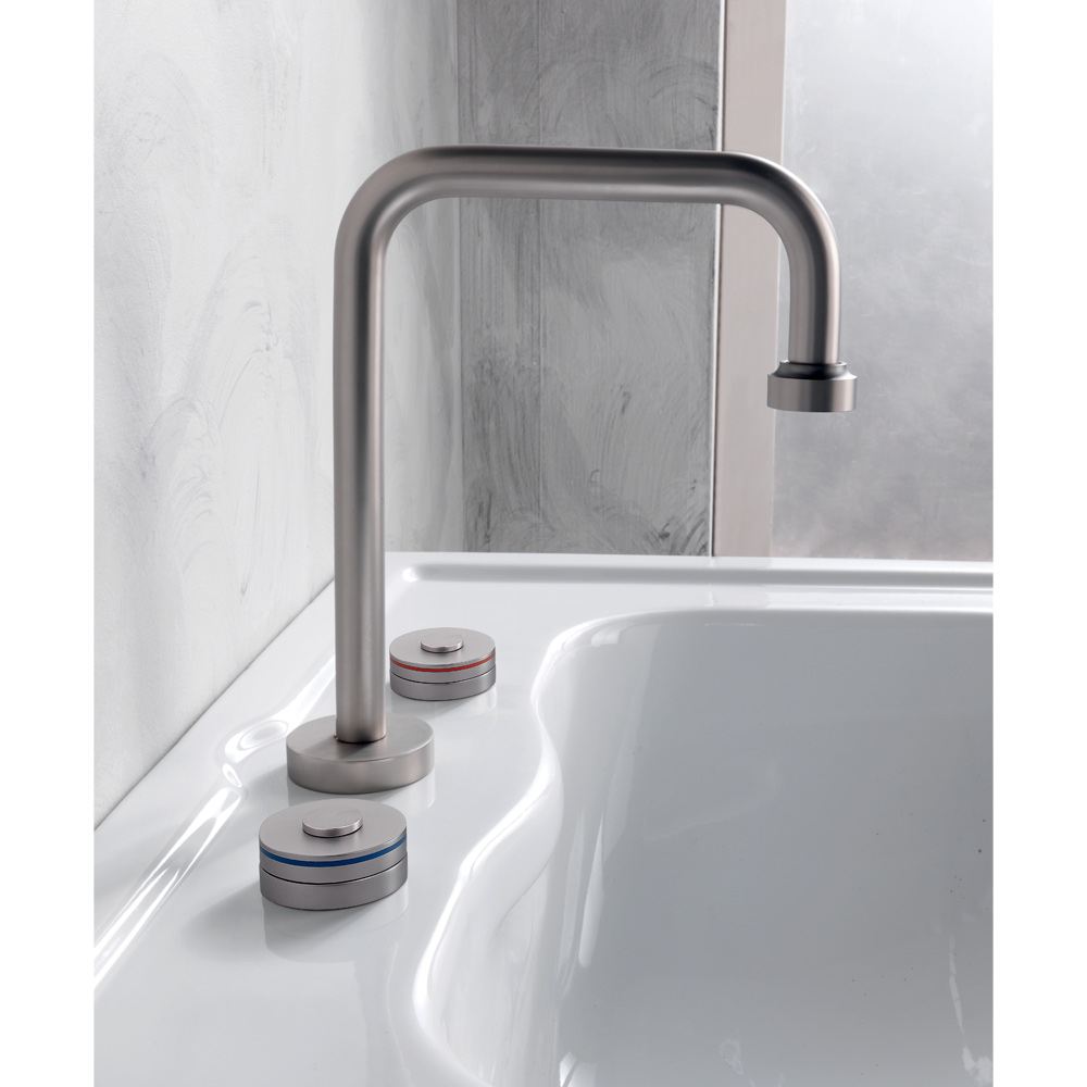 Moderno mezclador de lavabo de latón de 3 orificios con desagüe Made in Italy