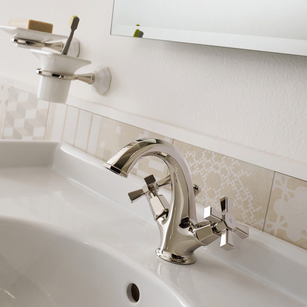 La colección Silvana è se caracteriza por sus formas hexagonales y superficies cuyas facetas reflejan la luz de forma original, iluminando el ambiente circundante. El estilo se inspira claramente en el arte Déco. Esta línea de grifería de baño de lujoè ha diseñado para ser combinada con bañeras, lavabos, duchas y bidés de diseño vintage y refinado.