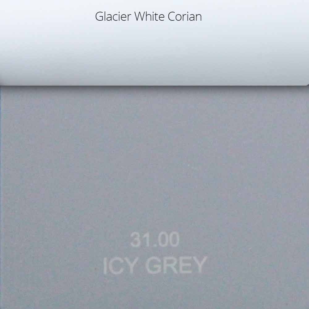 - Icy Grey + Glacier White Corian®: acabado gris claro frío mate con elementos DuPont ™ Corian® blancos;