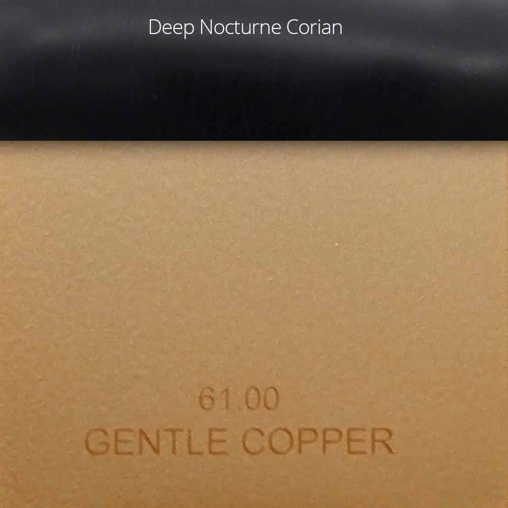 - Gentle Copper + Deep Nocturne Corian®: acabado metálico de cobre claro mate con elementos en DuPont ™ Corian® negro;