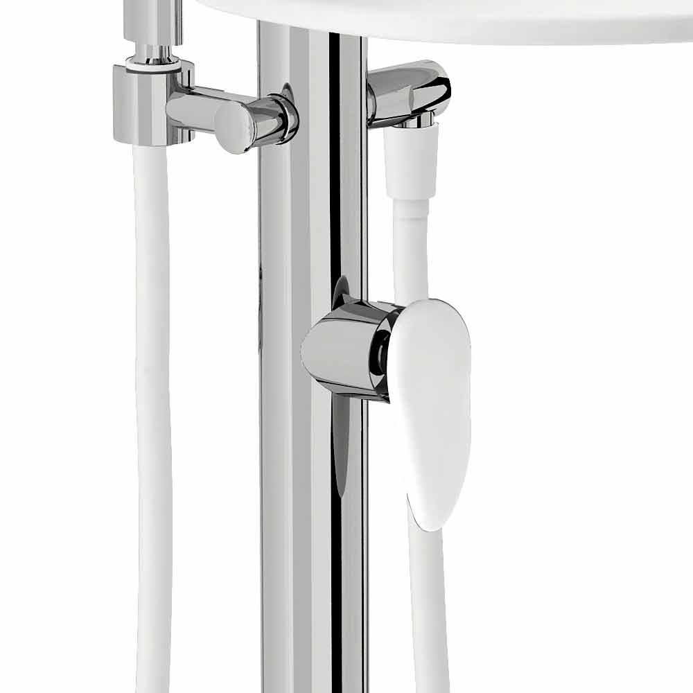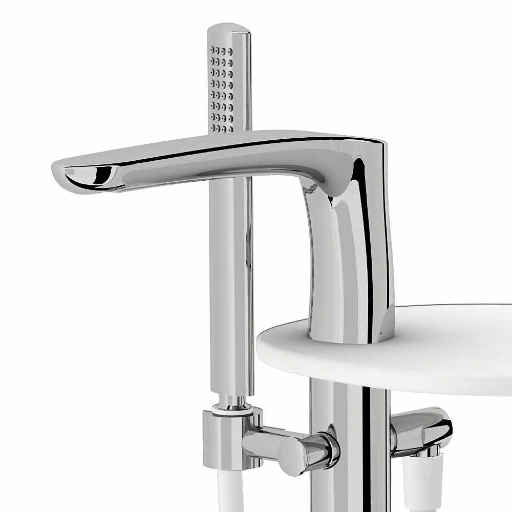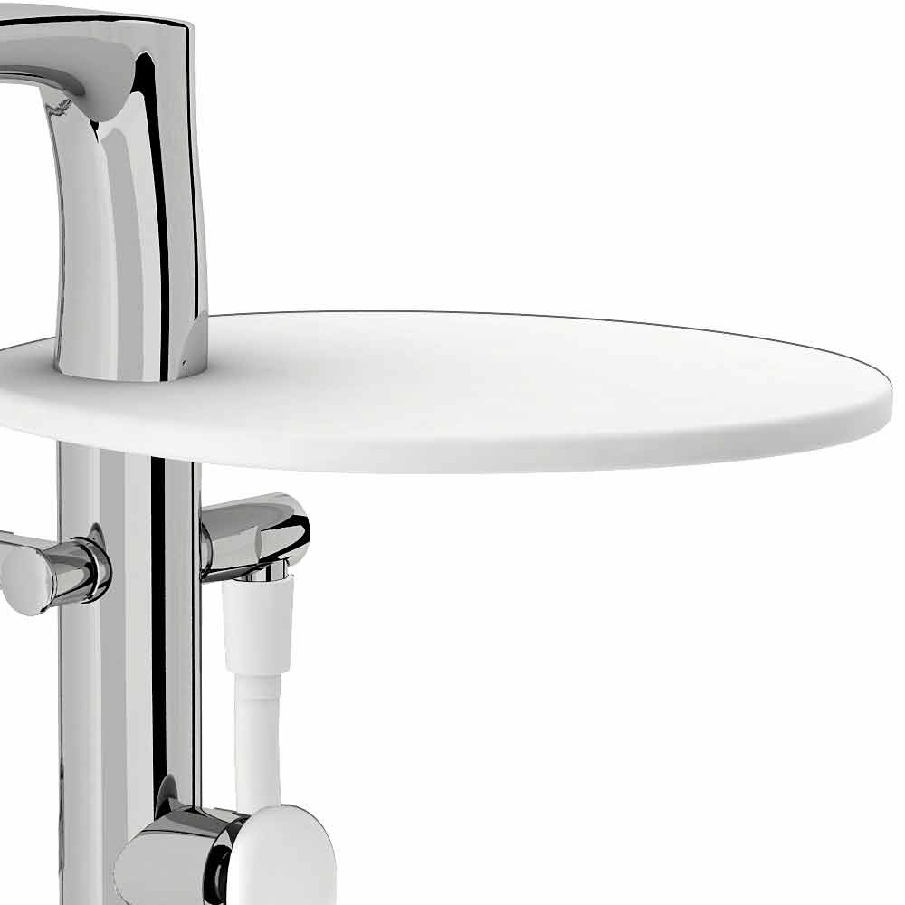 Mezclador de bañera de sobre encimera con desviador, teleducha dúplex y repisa en DuPont ™ Corian® Made in Italy.