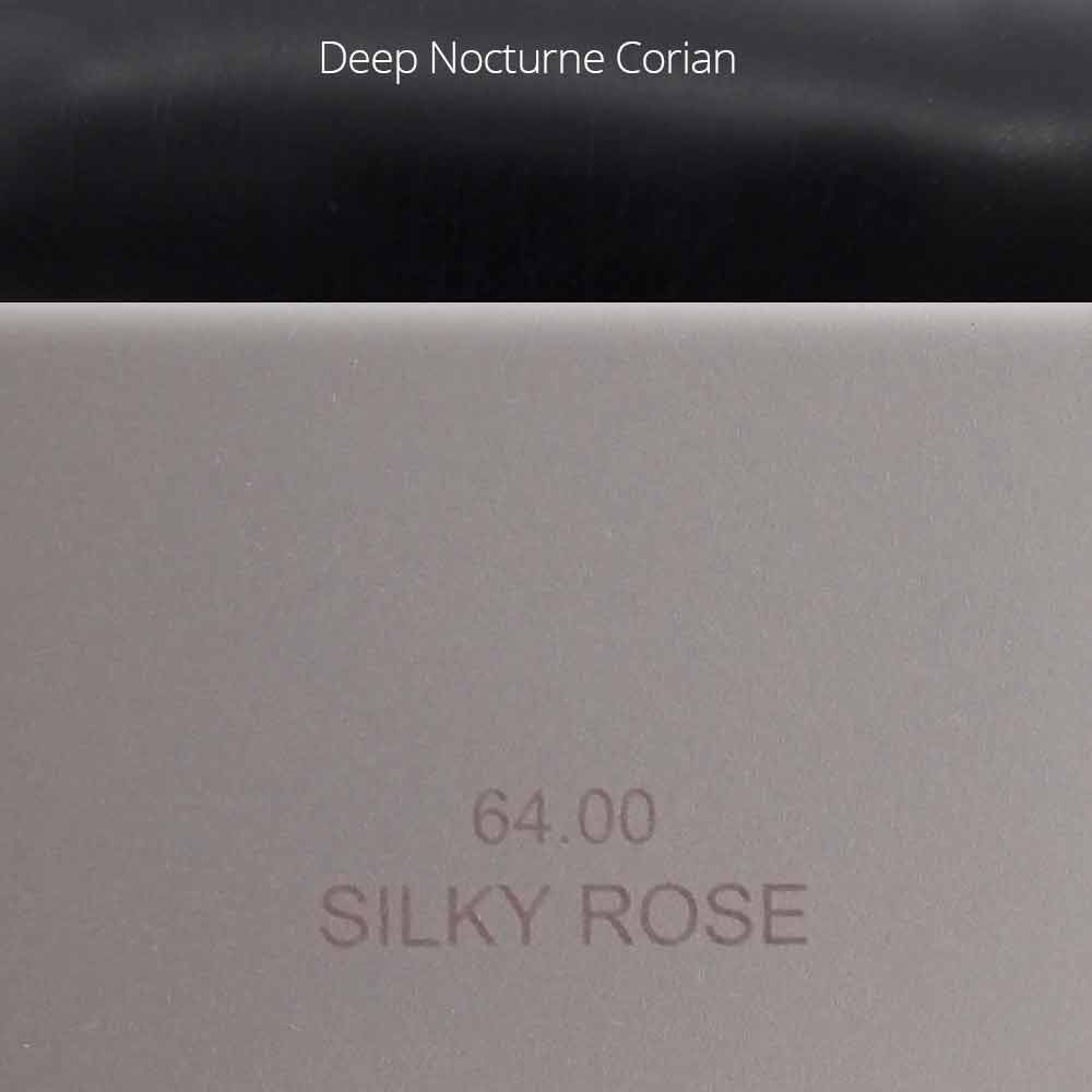 - Silky Rose + Deep Nocturne Corian®: acabado metálico rosa mate con elementos de DuPont ™ Corian® negros;
