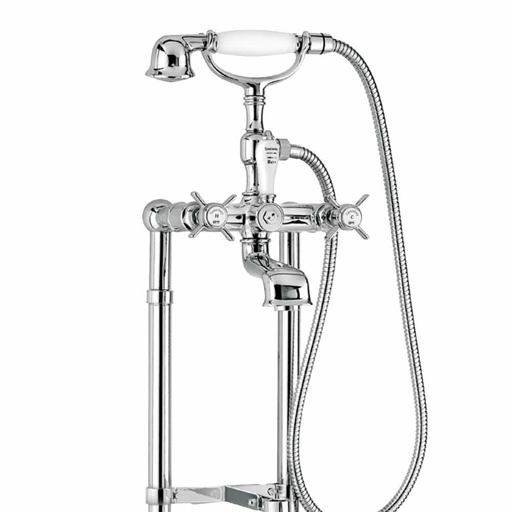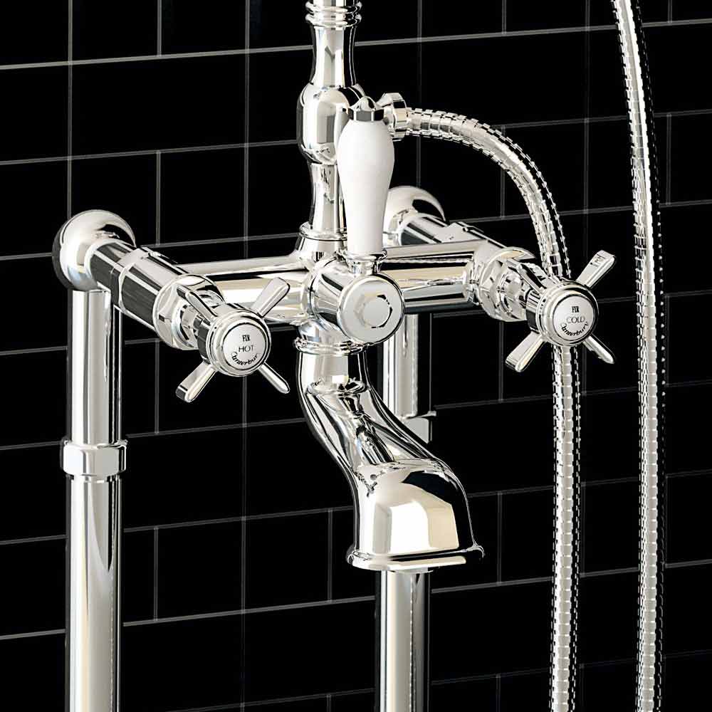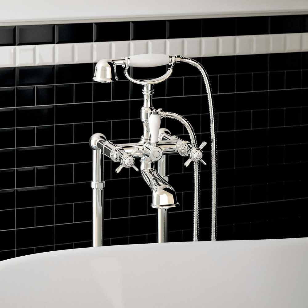Grifo de bañera exterior en columnas de suelo con desviador y ducha dúplex Made in Italy.