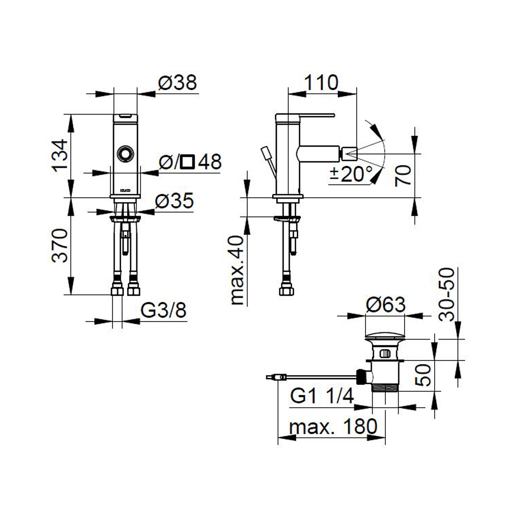 - tubos de presión 435 mm, G 3/8 pulgadas;
