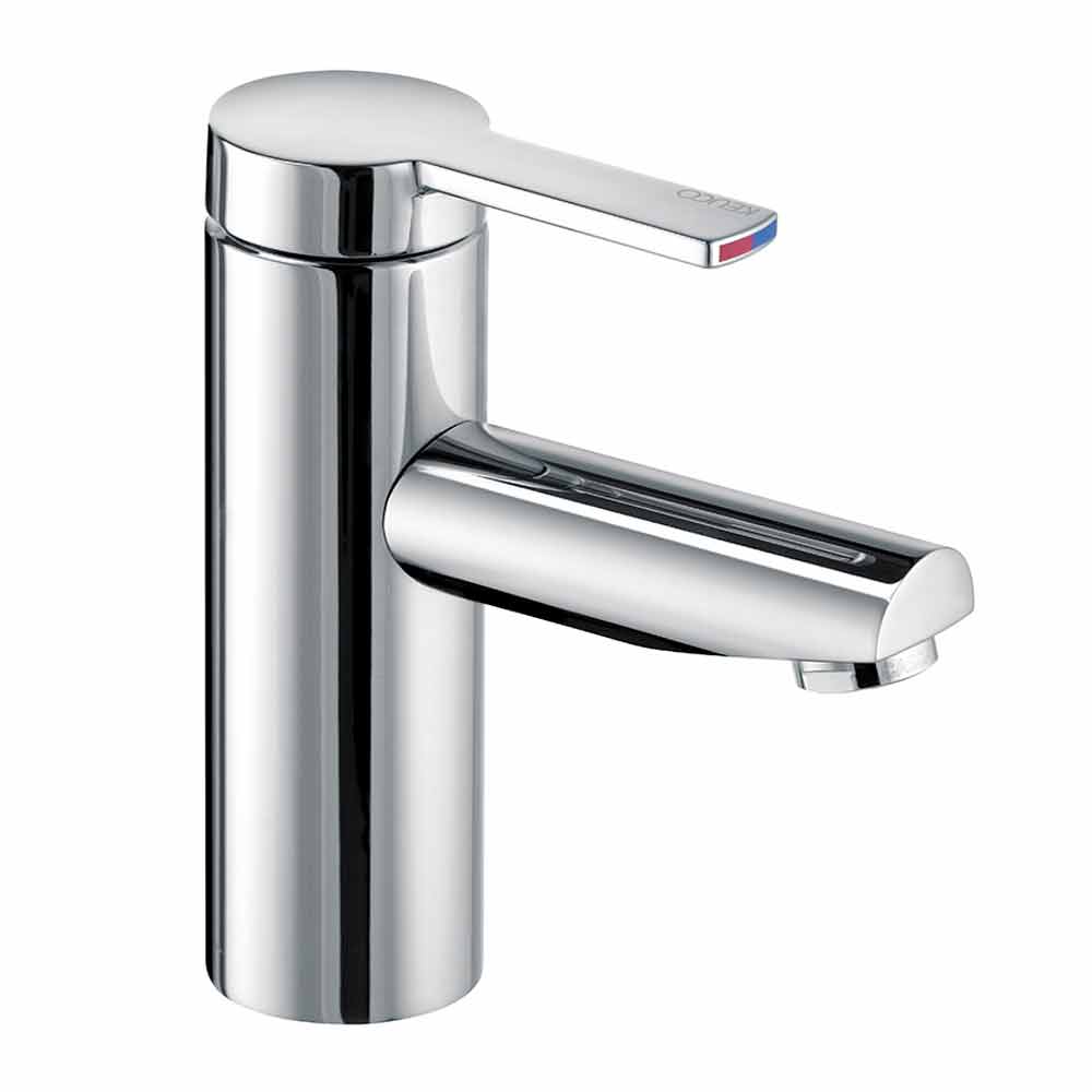 Mezclador monomando de lavabo para baño moderno fabricado en latón con acabado cromado.