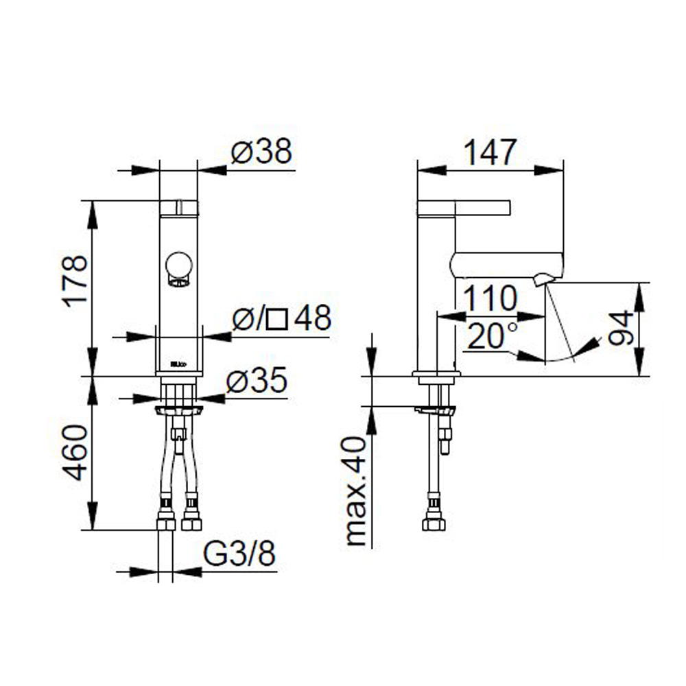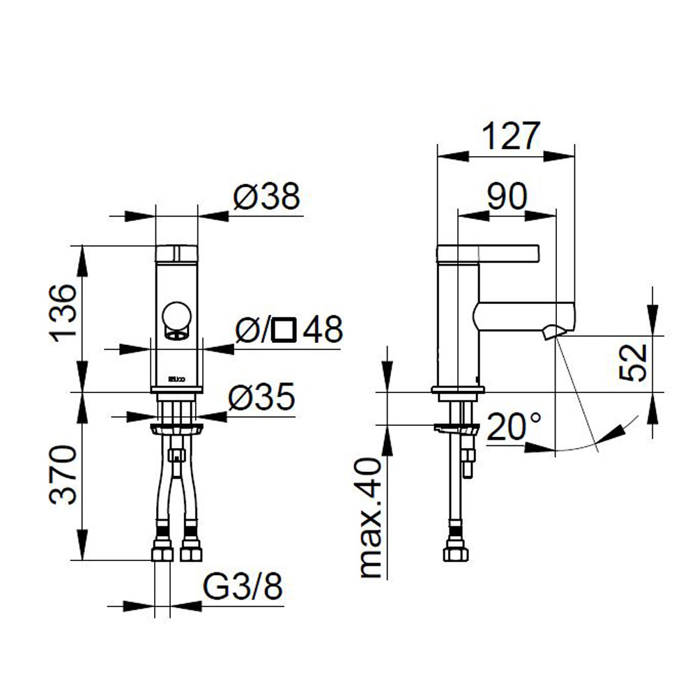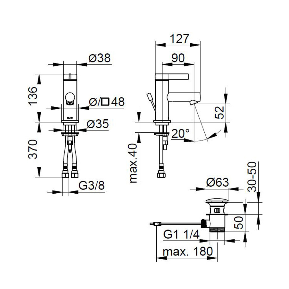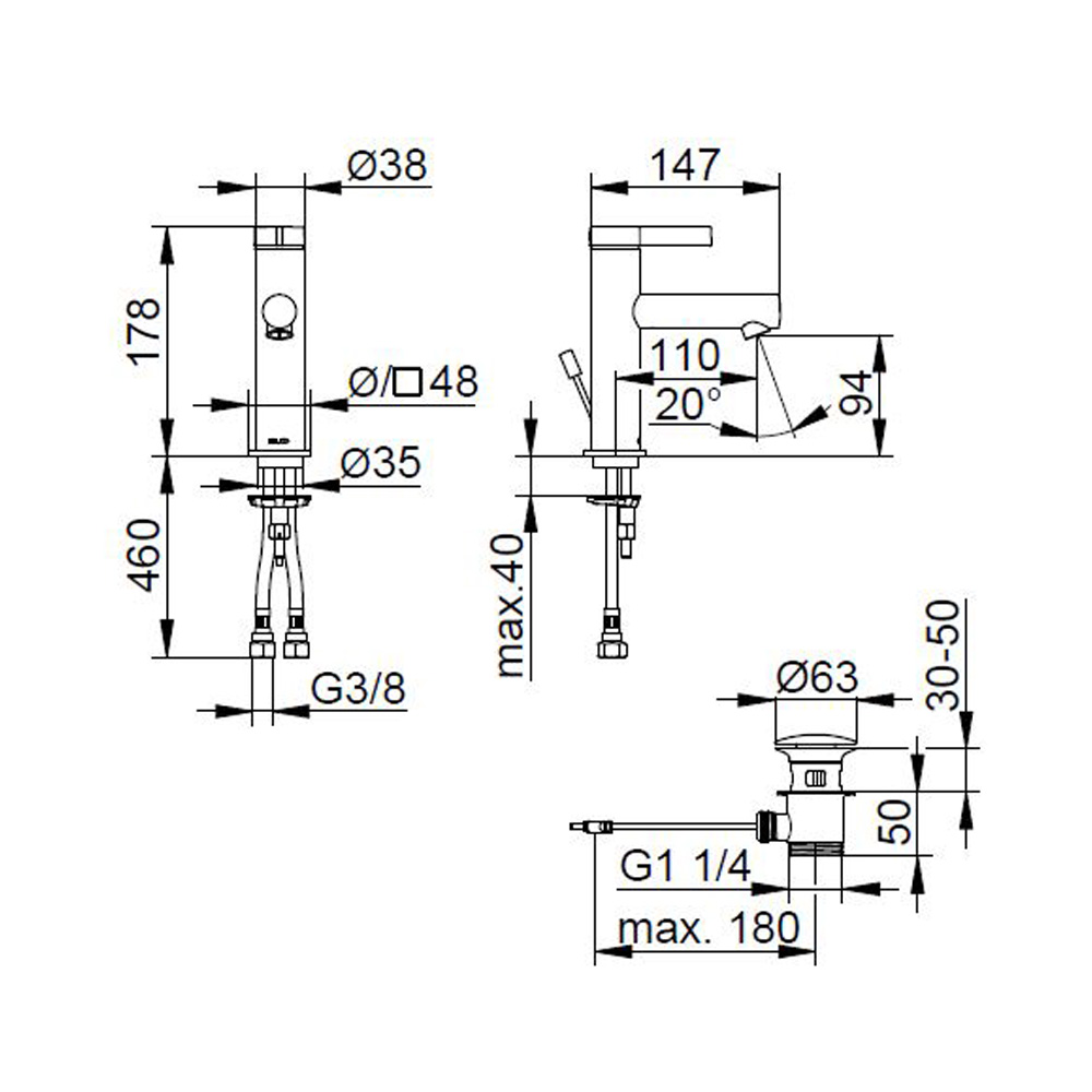 - aireador M 20x1, tubos de presión 570 mm, G 3/8 pulgadas;