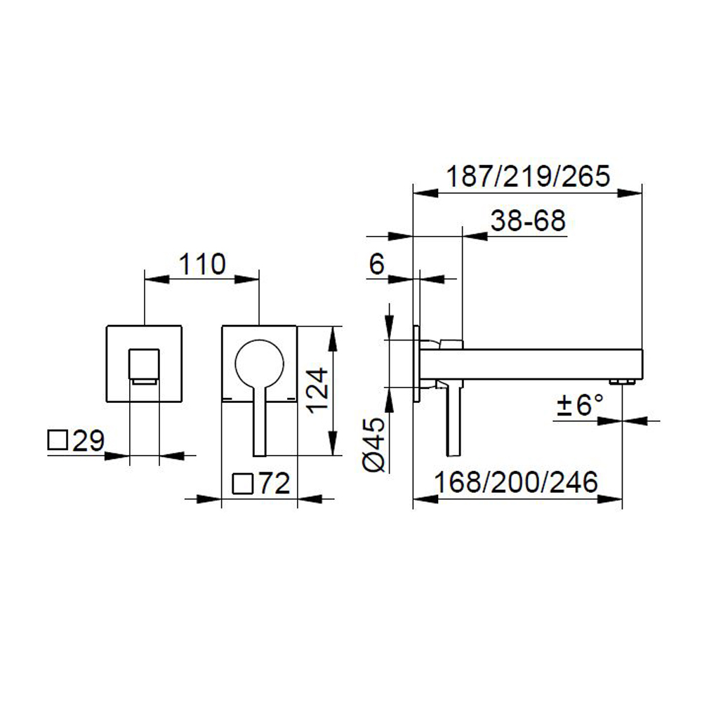 Grifo monomando de pared para lavabo, diseño cuadrado, 3 tamaños.