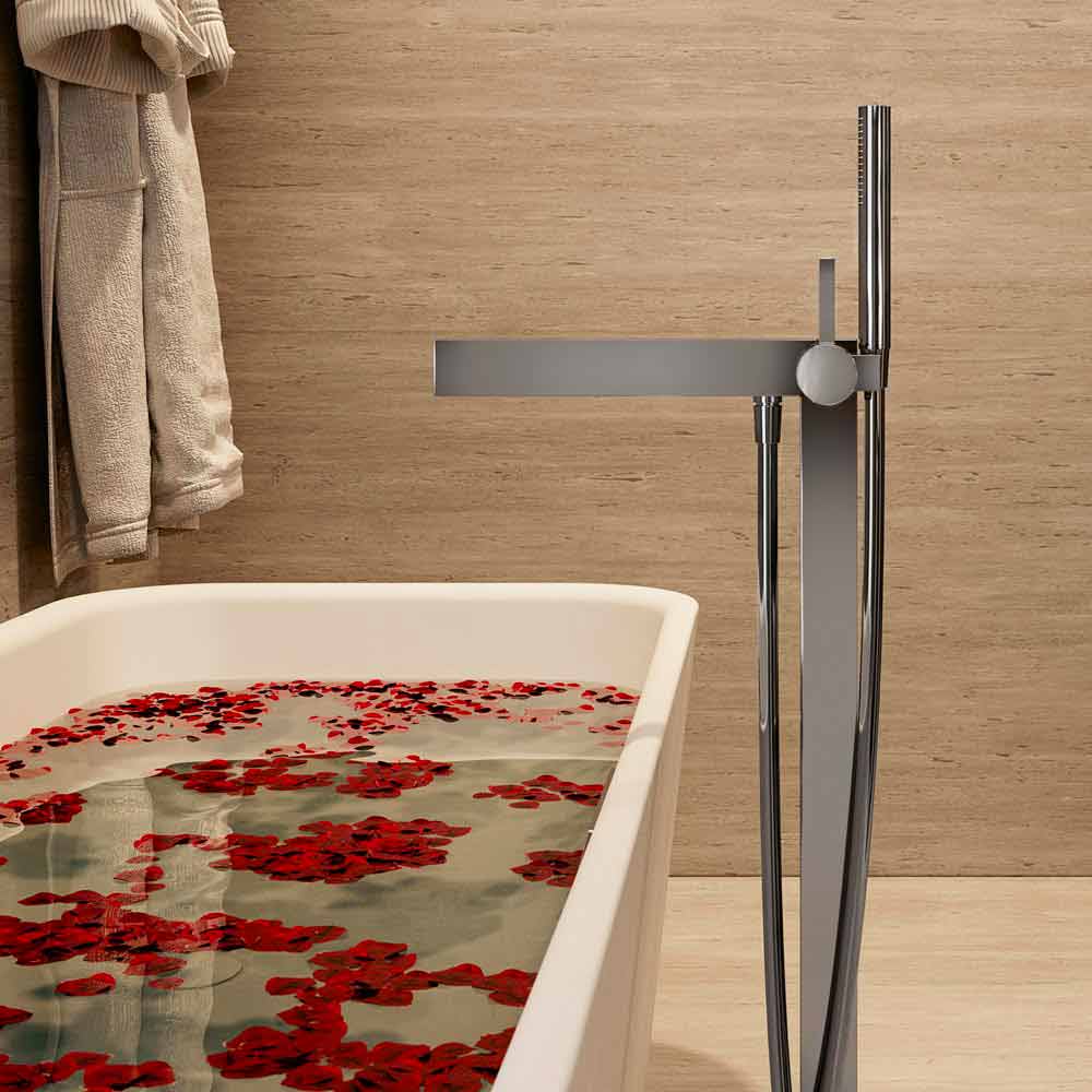 Esta maravillosa y elegante línea de grifería para baño combina formas redondas y cuadradas para crear ambientes únicos y lujosos. Su diseño es exclusivo y demuestra ser capaz de revolucionar el amueblamiento de cualquier baño con gusto moderno de una manera elegante y refinada. También cuenta con una conversión práctica y funcional de un caño a una teleducha integrada en los grifos para que pueda cambiar rápida y fácilmente de un modo a otro en una sola operación.