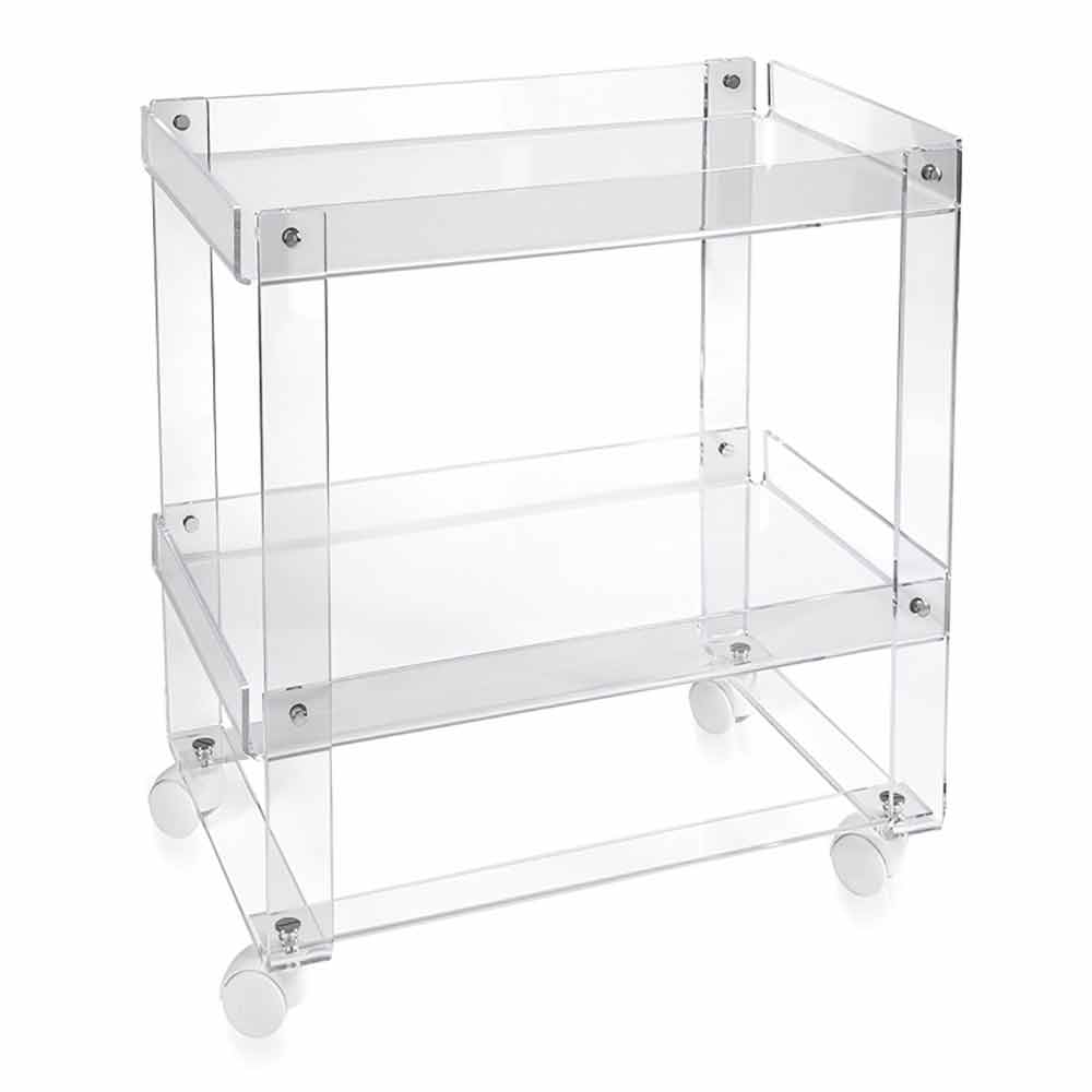 Práctico y versátil carrito de comida hecho con plexiglás 100% de polímero virgen, compuesto por 2 estantes, lo que lo hace muy útil como carrito auxiliar en el espacio doméstico.