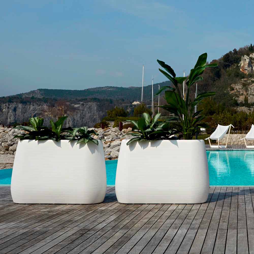 Florero moderno para exterior o interior en Poleasy blanco repujado, diseño made in Italy en 3 tamaños, 2 piezas.