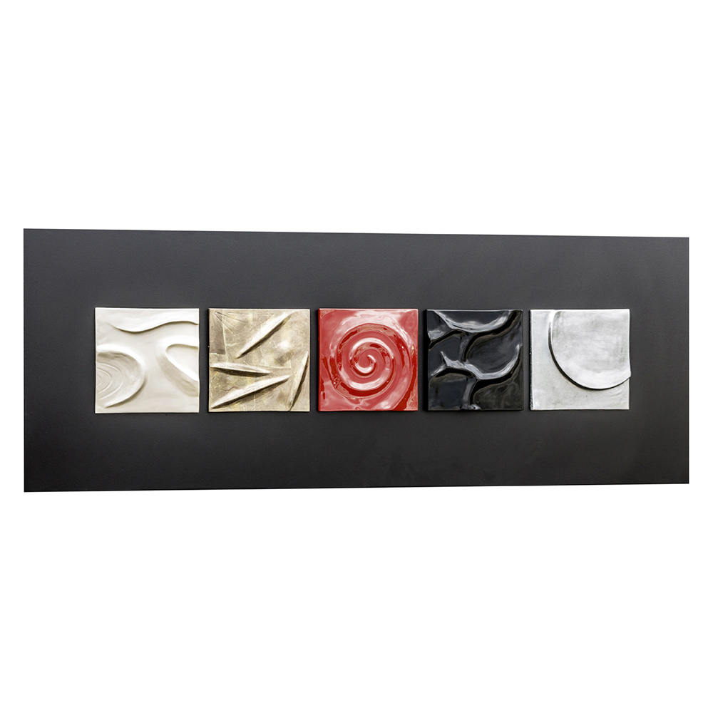 Cuadro abstracto de diseño Moma pintado a mano de Viadurini Decor. Tamaños: 160x60cm Panel cubierto de algodón con adornos de marmolina pintada a mano. Cinco elementos de cerámica compuesta, decorados a mano con hoja de plata y cobre, fondo negro sobre estructura tela, retoque lúcido. Prestigio y originalidad: la nueva colección Pintdcor ofrece una gama de muchas formas y retoques que satisfacen cada estilo de decoración. La elegancia del diseño se une al refinamiento de los materiales. Los colores y las tecnicas se funden para crear una nueva idea de tridimensionalidad. Los productos Viadurini Decor se han realizado a mano en Italia de forma artesanal especializada que utiliza materiales ecológicos, retoques y tintas atóxicos a base de agua. Los espejos tienen un sistema contra accidentes y la fijación a la pared regulable. Los dichos detalles son sólo algunos de los que Viadurini Decor dedica a sus creaciones, para asegurar siempre un producto de alta calidad fabricado en Italia.