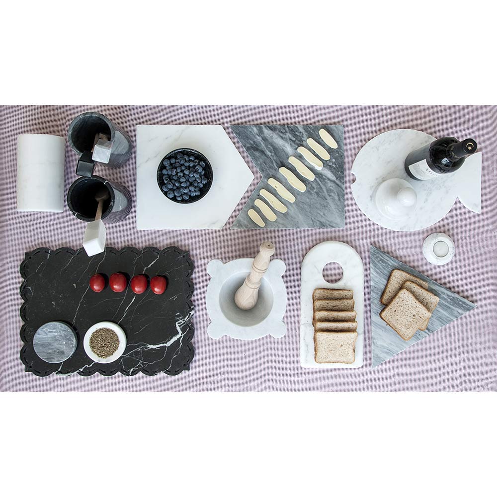 El mármol blanco de Carrara utilizado para la creación de estos productos proviene de la cantera Poggio Silvestre, fuente de mármol de primera calidad clasificado desde el siglo pasado. Cada producto también está elaborado a mano por profesionales especializados durante generaciones en el procesamiento del mármol.