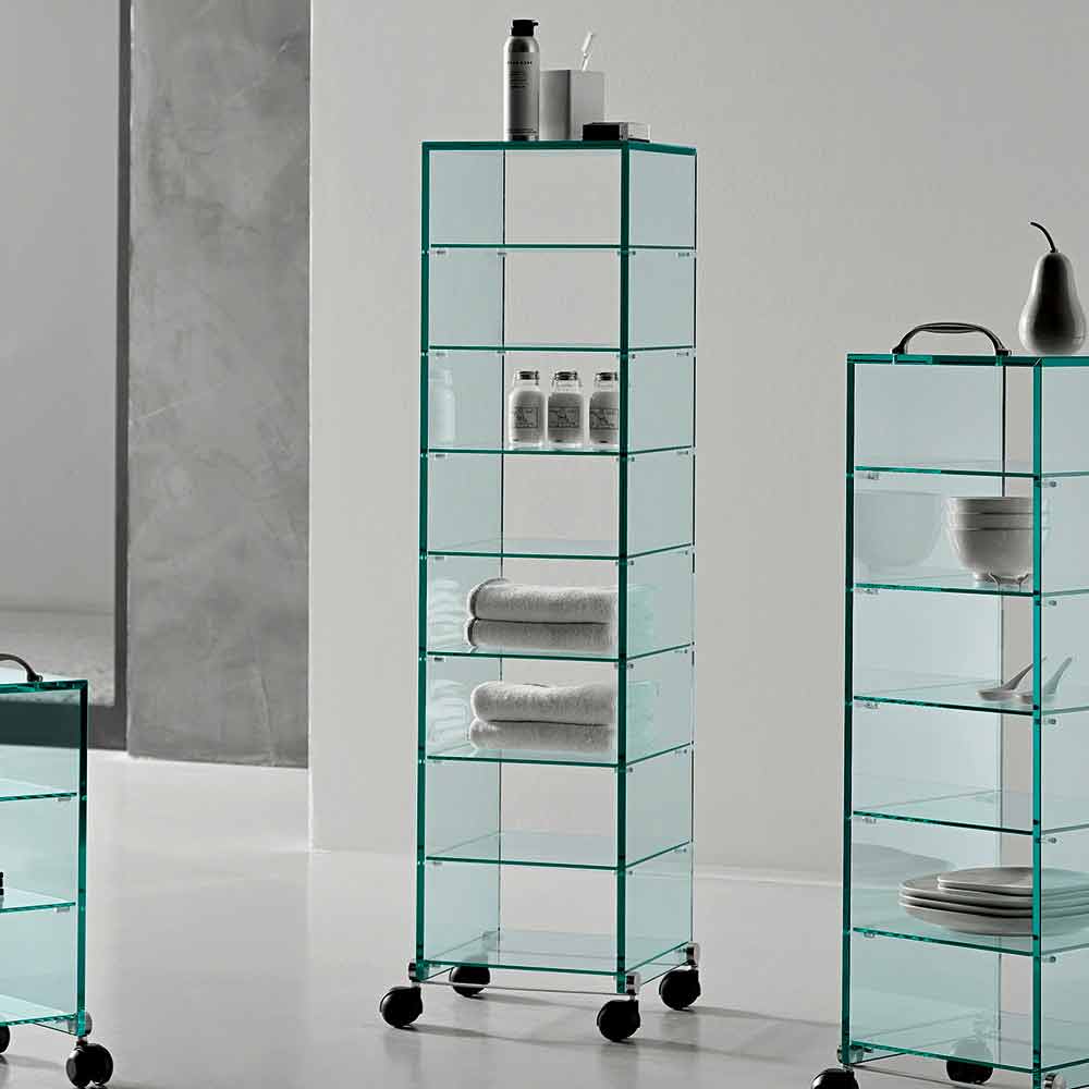 Hecho a mano en Italia con materiales de alta calidad , es un accesorio independiente sobre ruedas y está disponible en varios tamaños con 3, 6, 8 o 10 estantes.