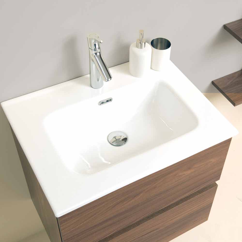 - un lavabo empotrado de cerámica de L 60 x P 46 x H 2 cm;