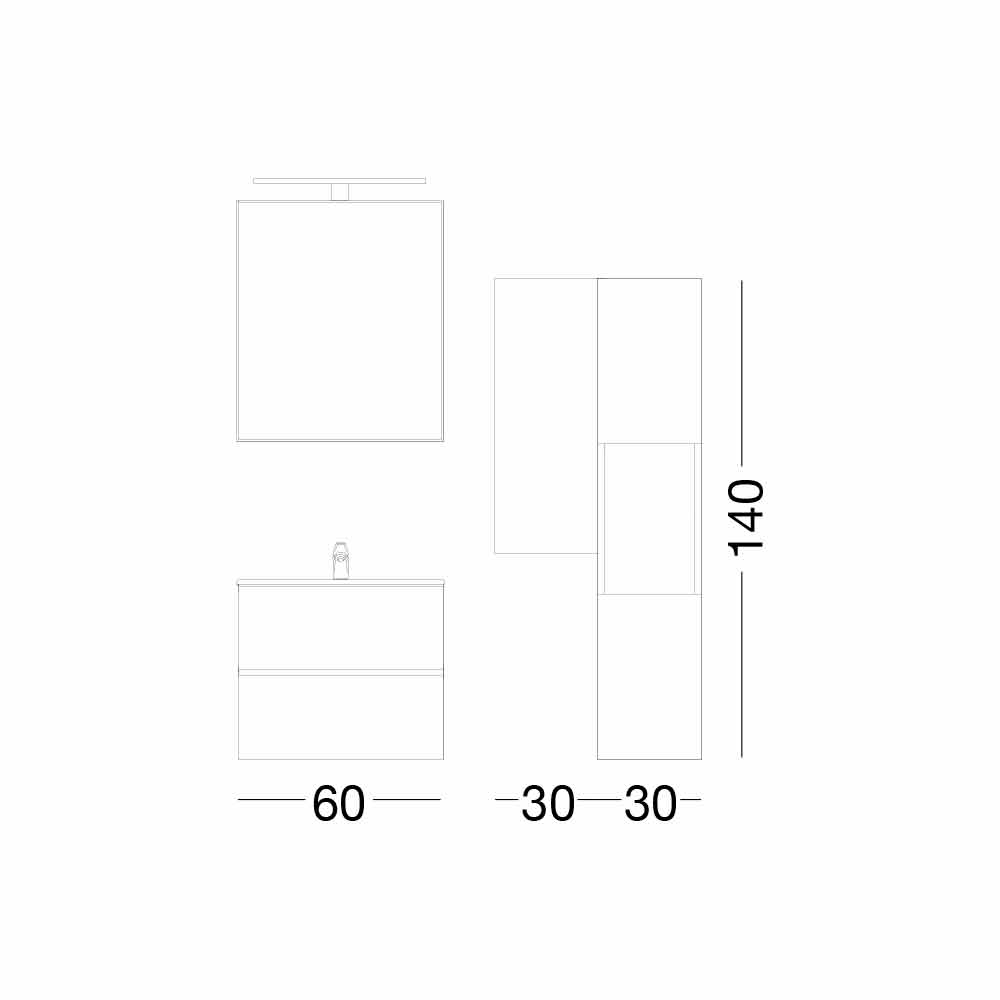 Mueble de baño de 60 cm, lavabo de diseño, espejo, columna y mueble.