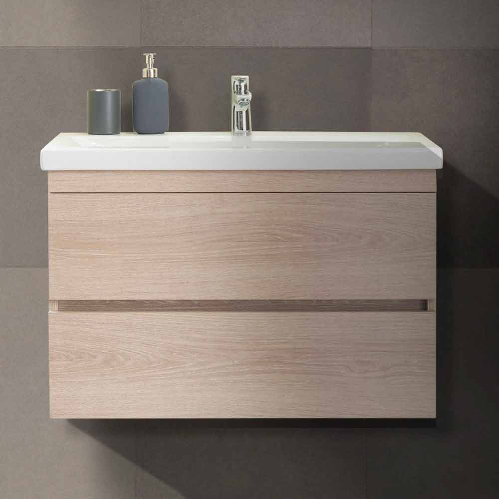 Mueble de baño de 80 cm, 2 columnas, lavabo moderno y espejo.