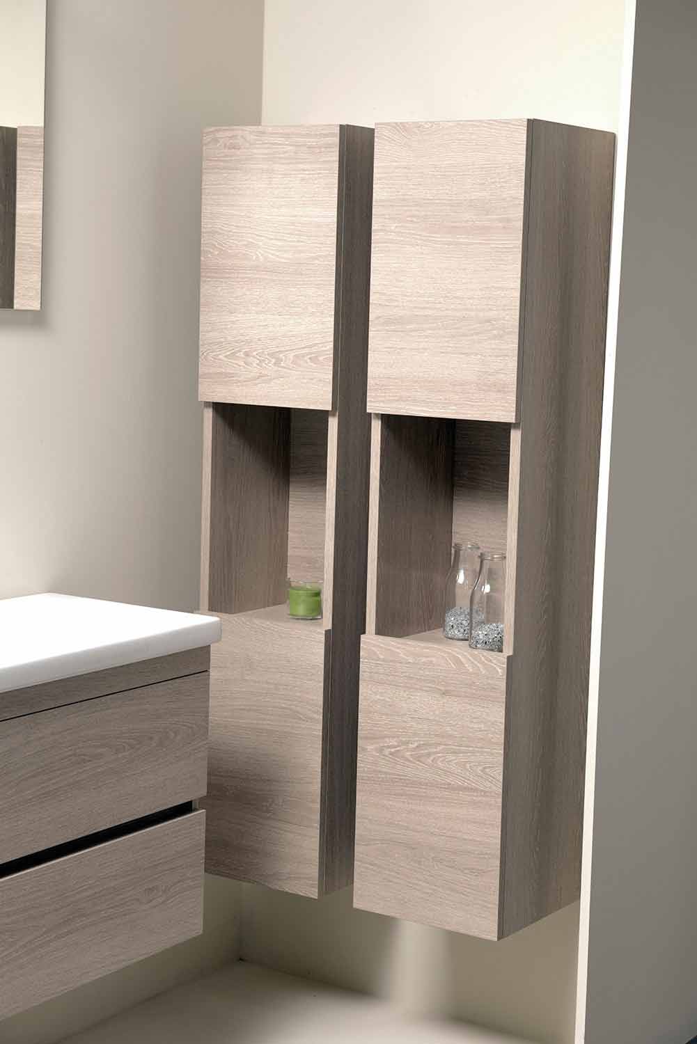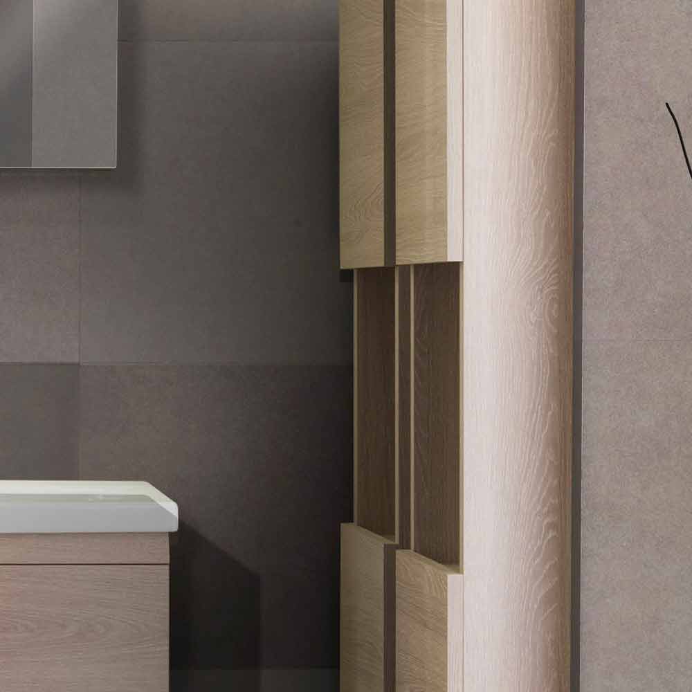 - Dos columnas con espacio diurno y dos puertas en arena de roble melaminado de L 30 x P 30 x H 140 cm cada una.