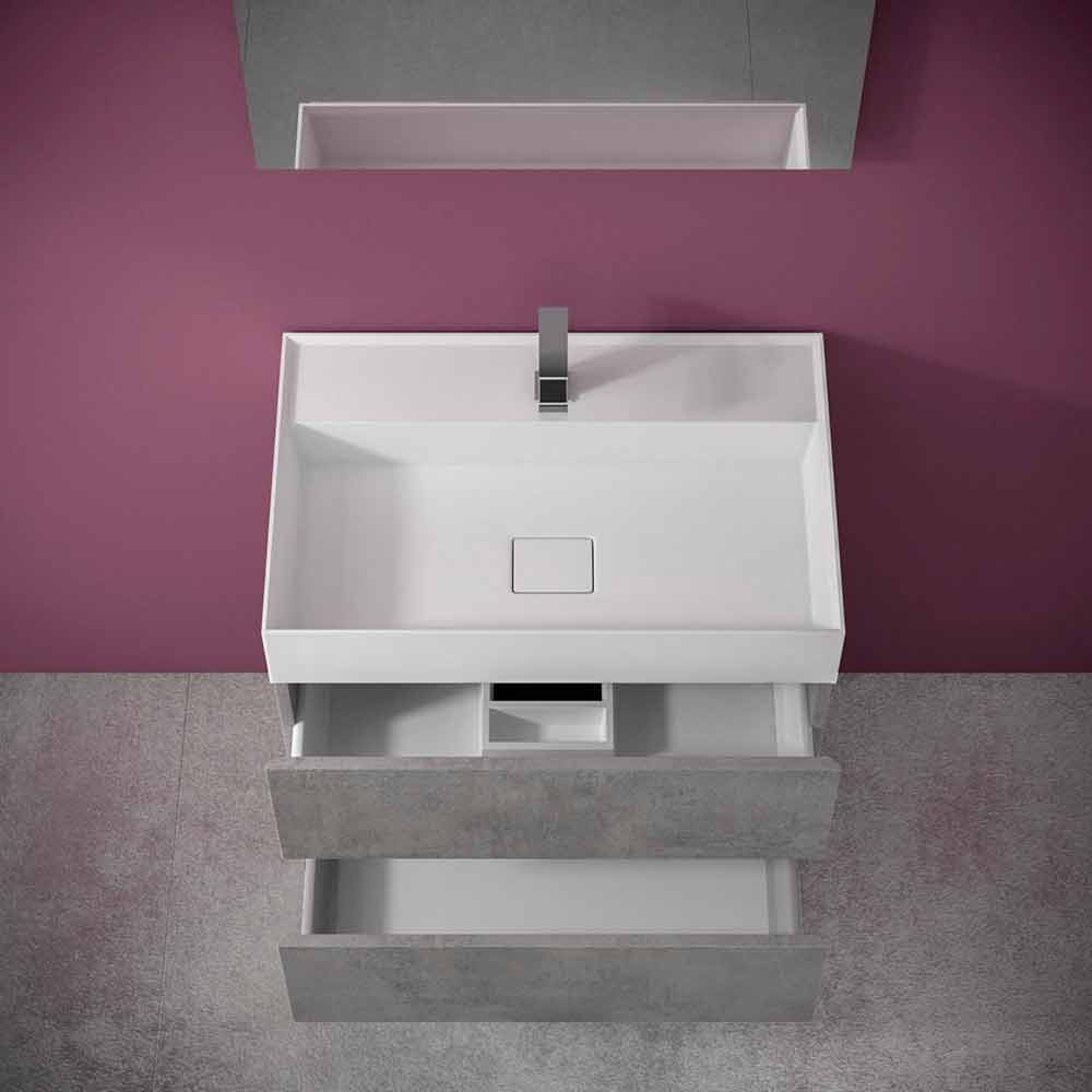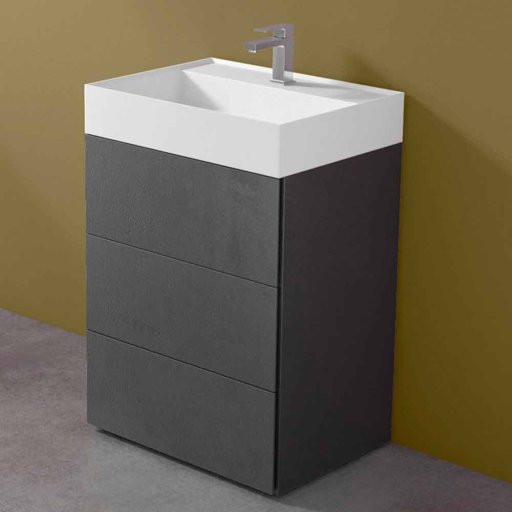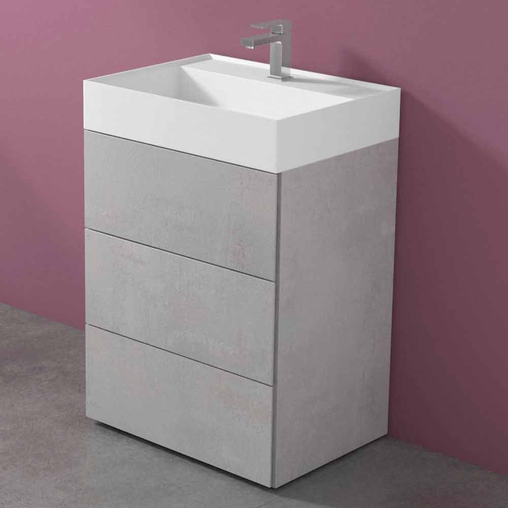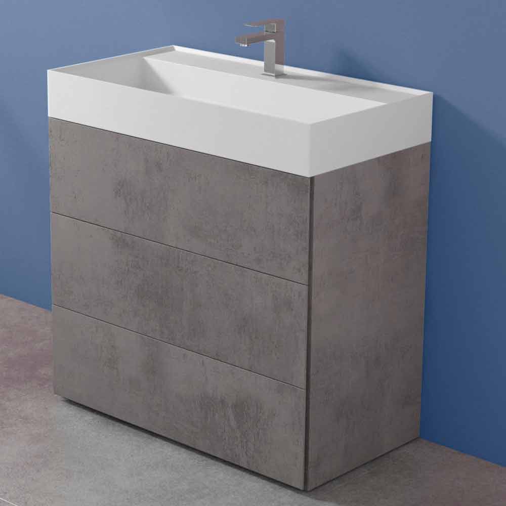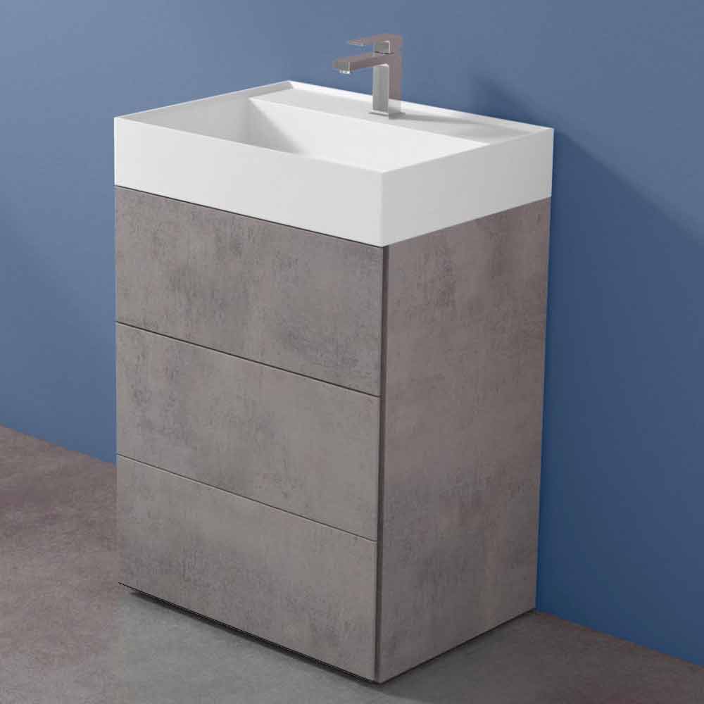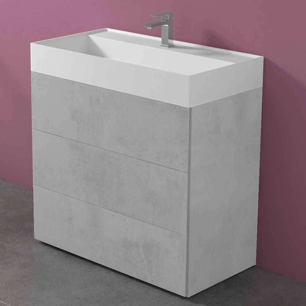 Mueble de baño con suelo de diseño moderno en laminado con lavabo de resina - Pompei