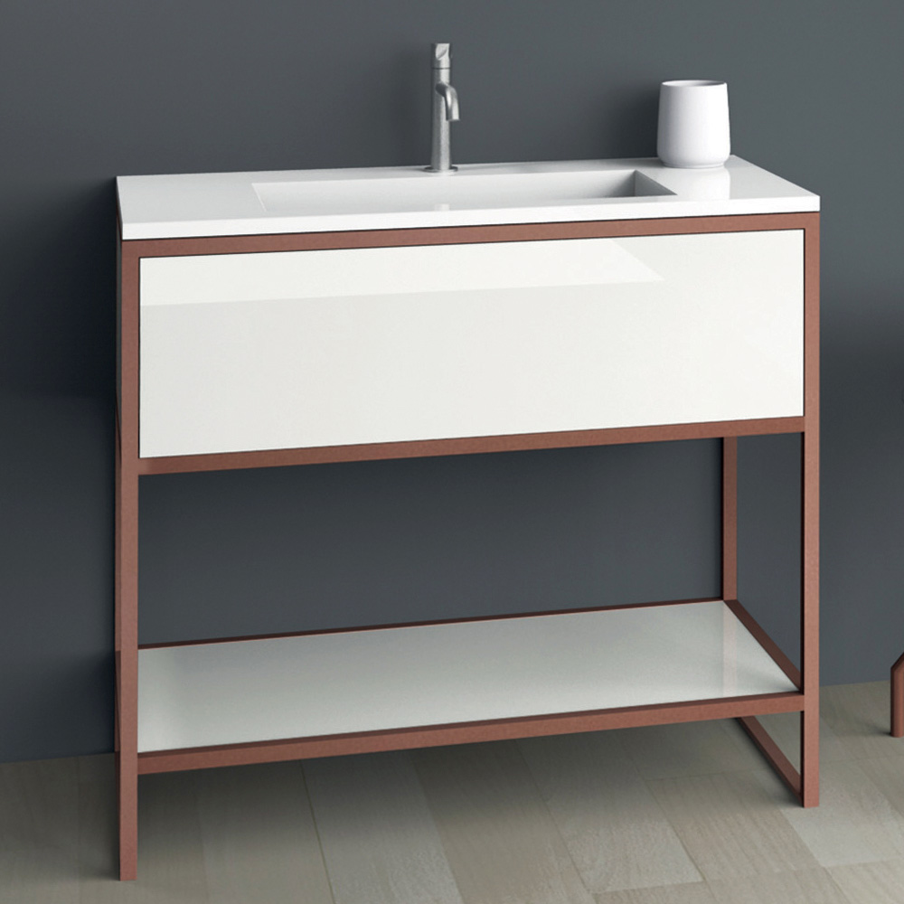 Mueble de baño de suelo en metal cobre y MDF blanco Made in Italy - Cizco