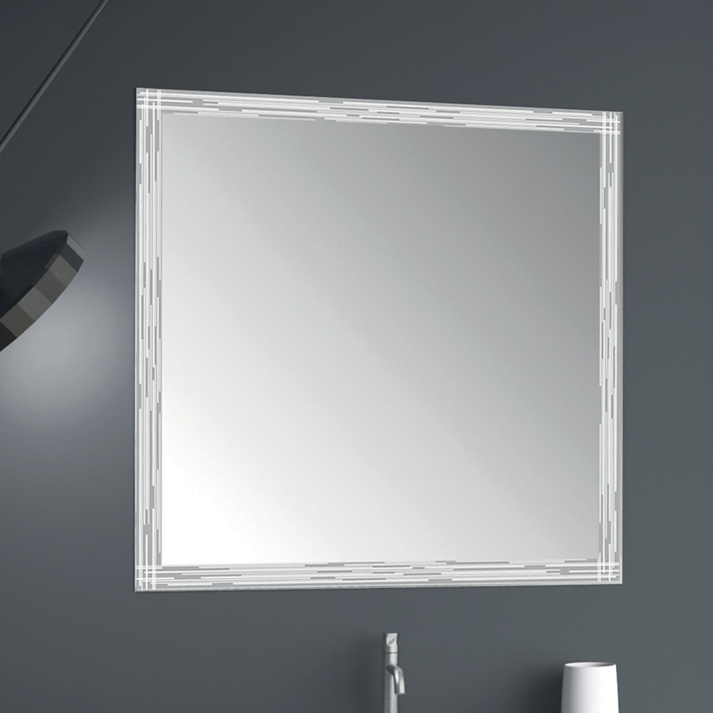El espejo con decoración láser está equipado con iluminación LED en 4 lados .