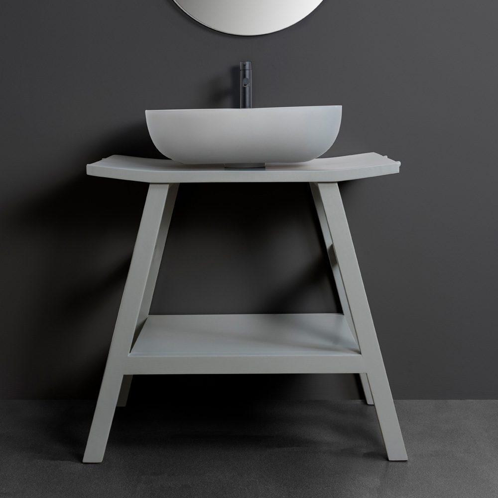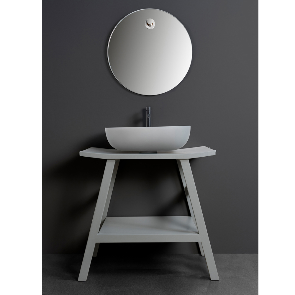 Mueble de baño con estructura en teca natural reciclada pintada de gris.