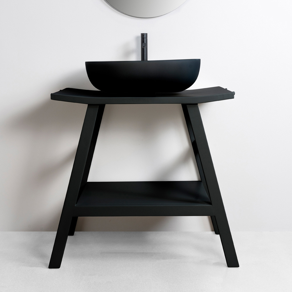 Mueble de baño moderno en teca negra mate con estante inferior - Crina