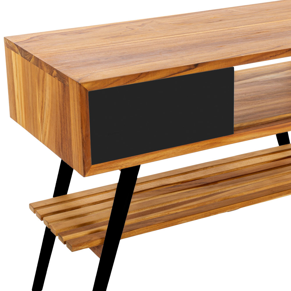 Mueble de baño de teca natural recuperada con cajón de caoba negro mate.