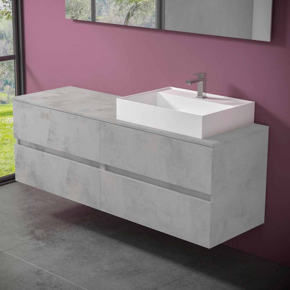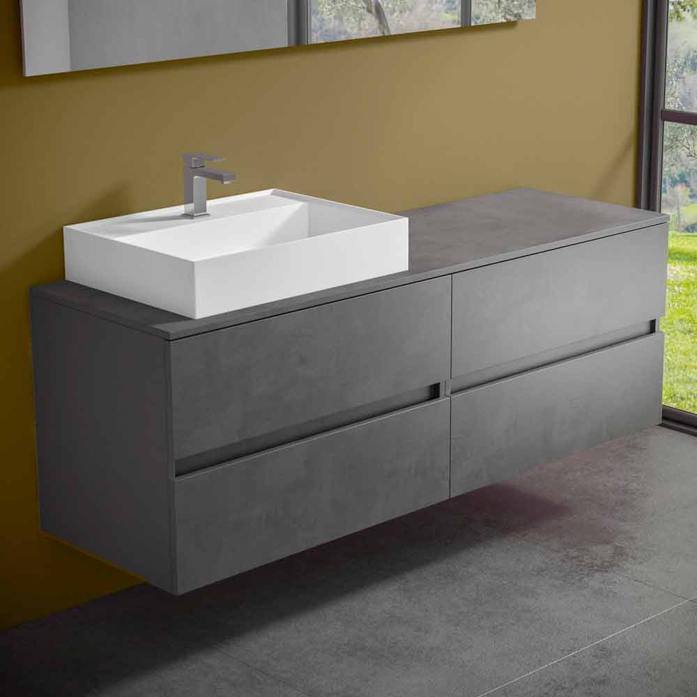 La base del lavabo consta de dos muebles con un cajón estándar y un cajón perfilado cada uno y está fabricado en fibra de madera laminada e hidrófuga Hydro W 100 , con el fin de garantizar una mayor durabilidad y evitar que el mueble se dañe en contacto con el agua.