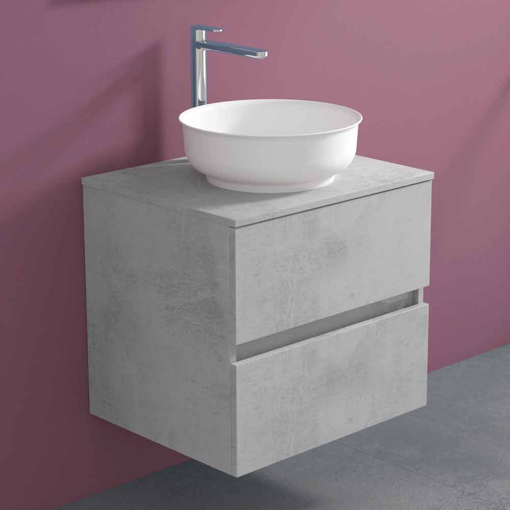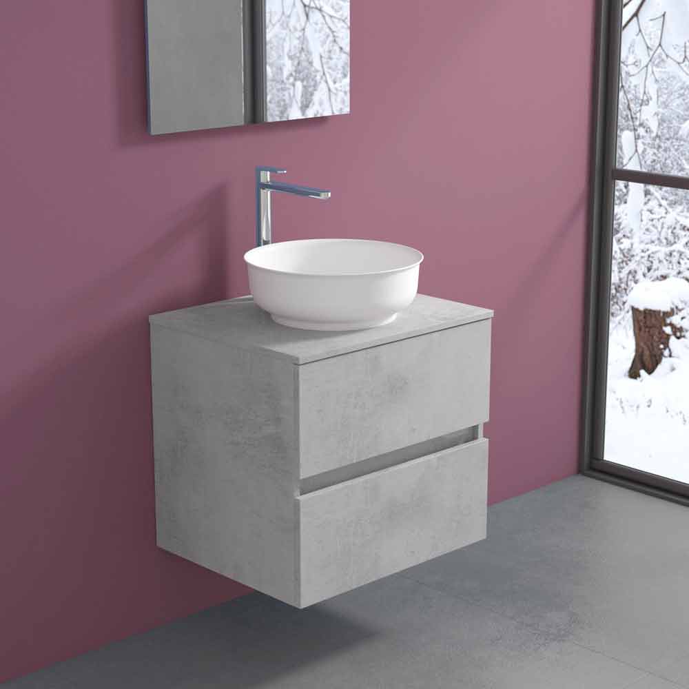 Se trata de un mueble de baño suspendido con un original y elegante lavabo redondo sobre encimera que le da a la estructura un diseño moderno y sofisticado que no quiere renunciar a la practicidad y funcionalidad.