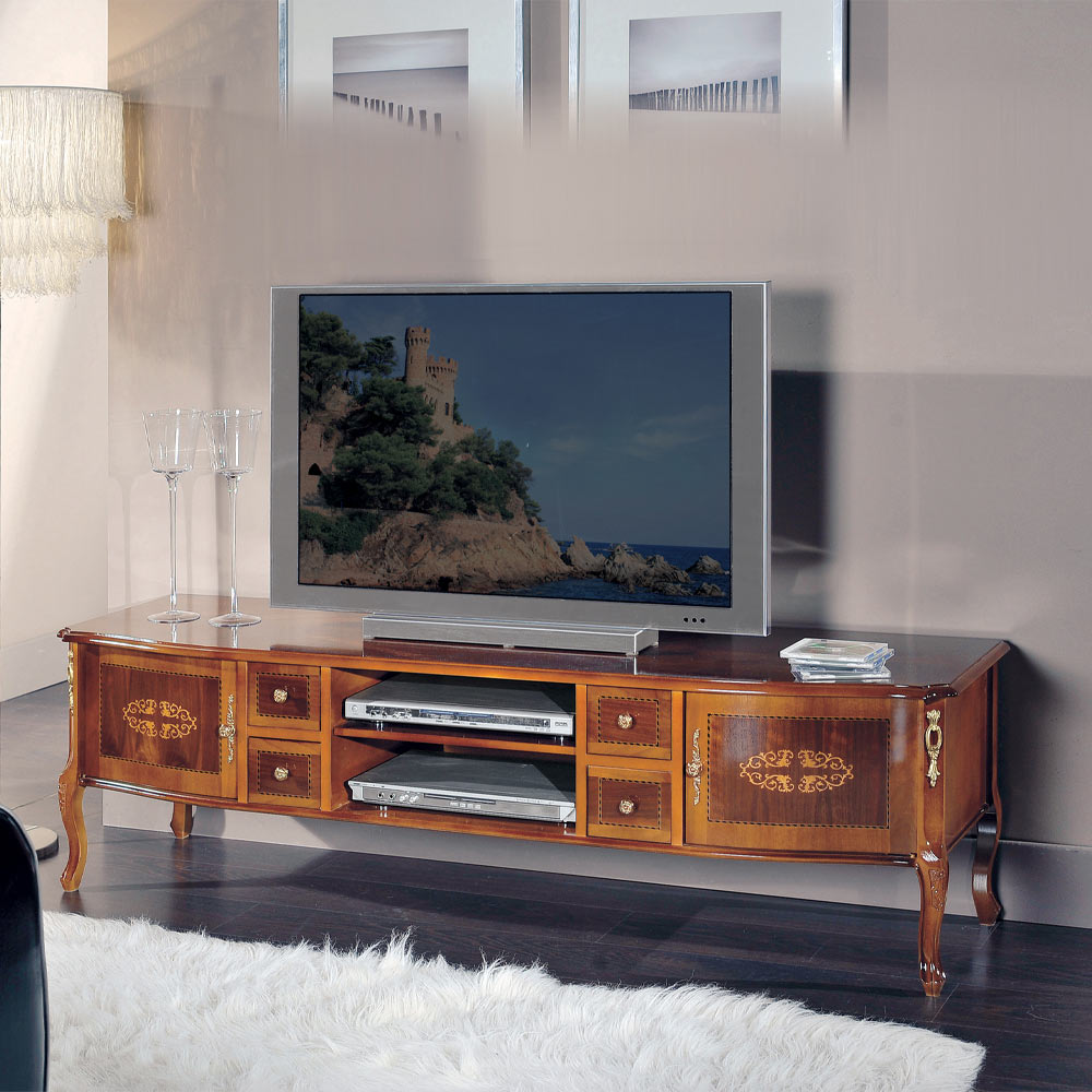 Mueble de TV clásico de madera con incrustaciones, fabricado en Italia