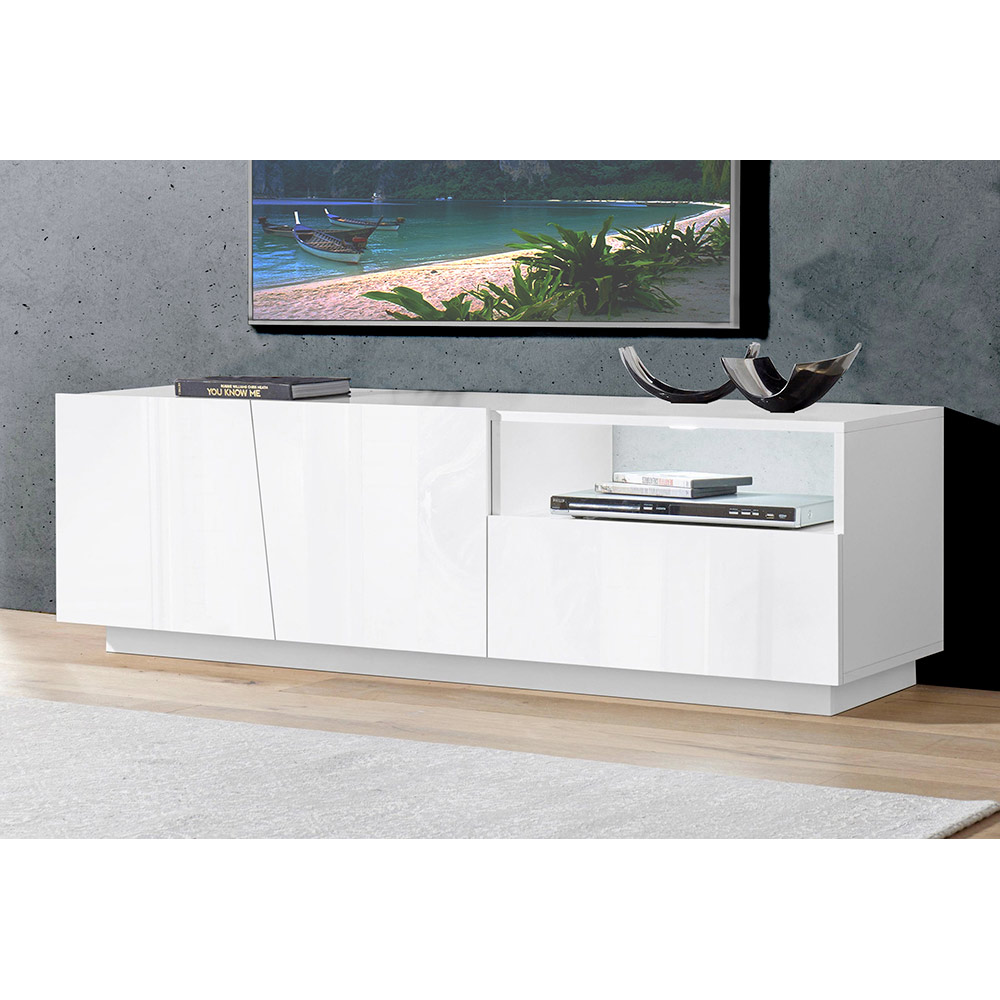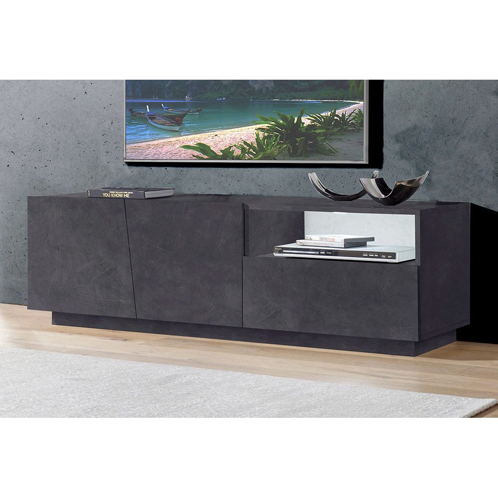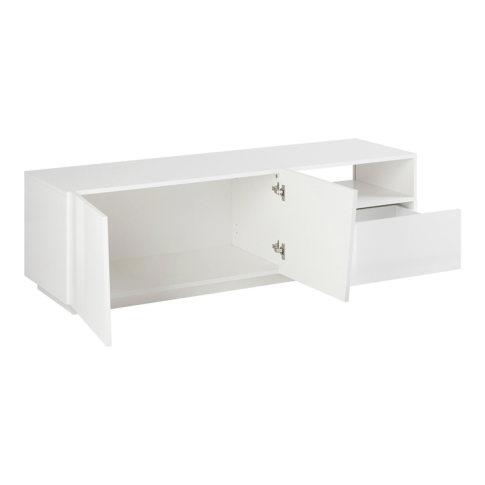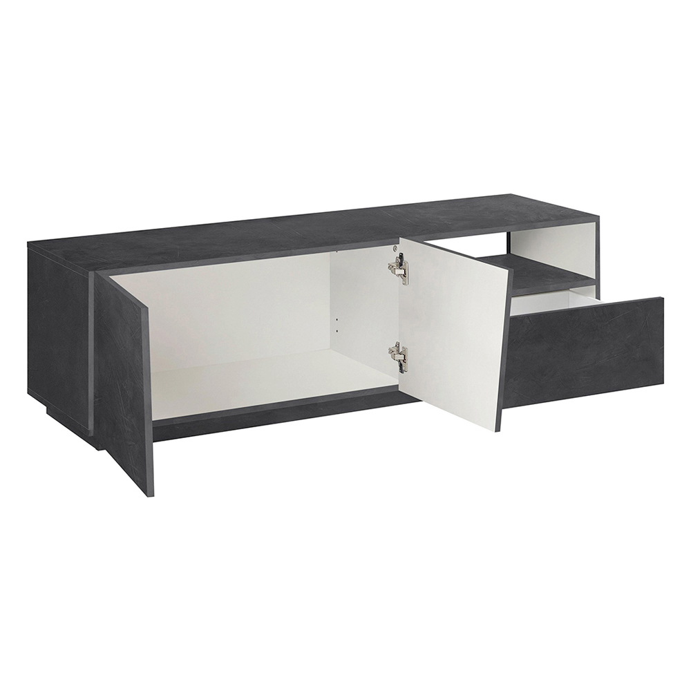 2 puertas batientes, un cajón y un compartimento abierto que garantizan mucho espacio de almacenamiento. Está fabricado en