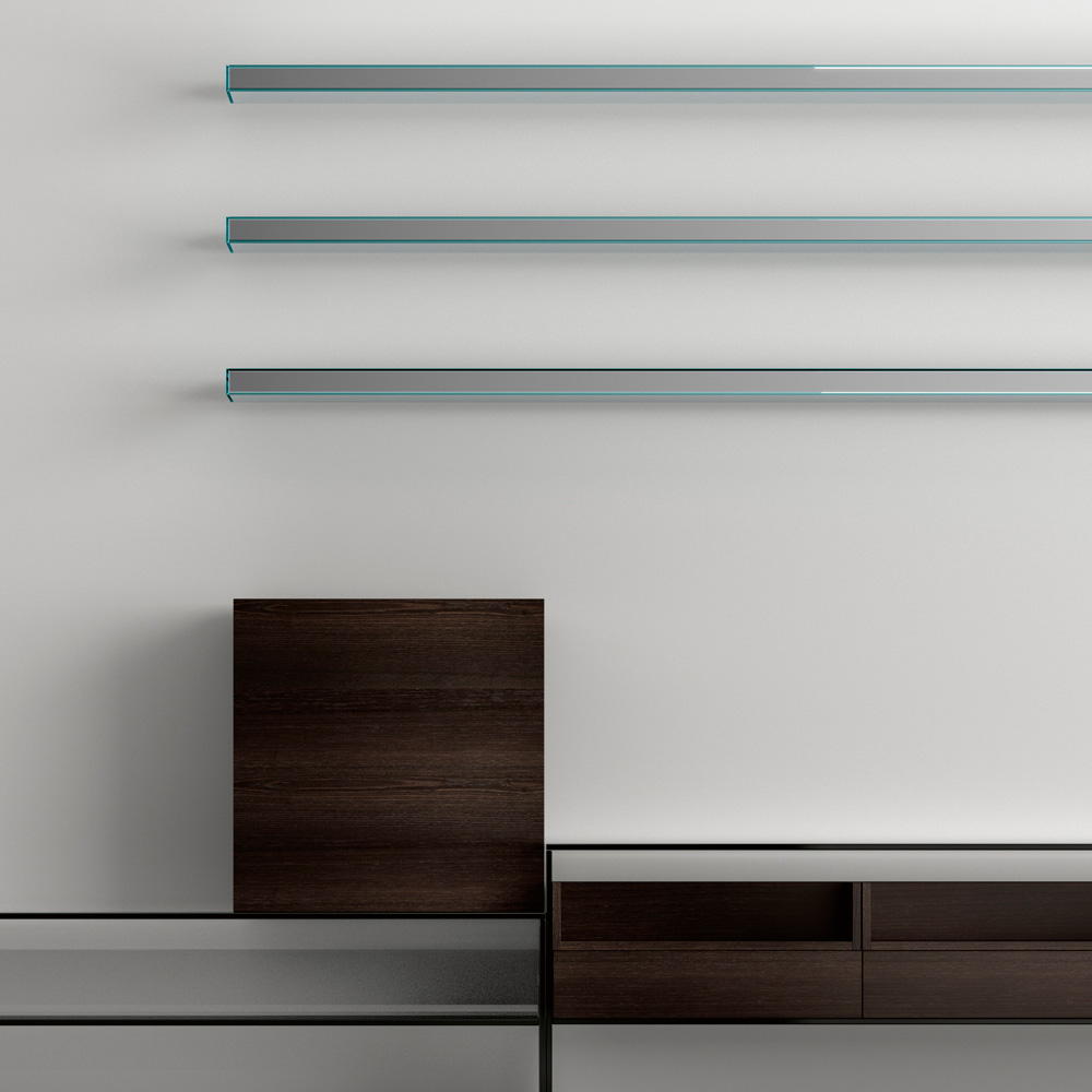 Una nueva interpretación del sistema día que hace de la ligereza del vidrio su principal cualidad. La composición se puede diseñar con total libertad para adaptarse mejor a cualquier necesidad y estilo de decoración.