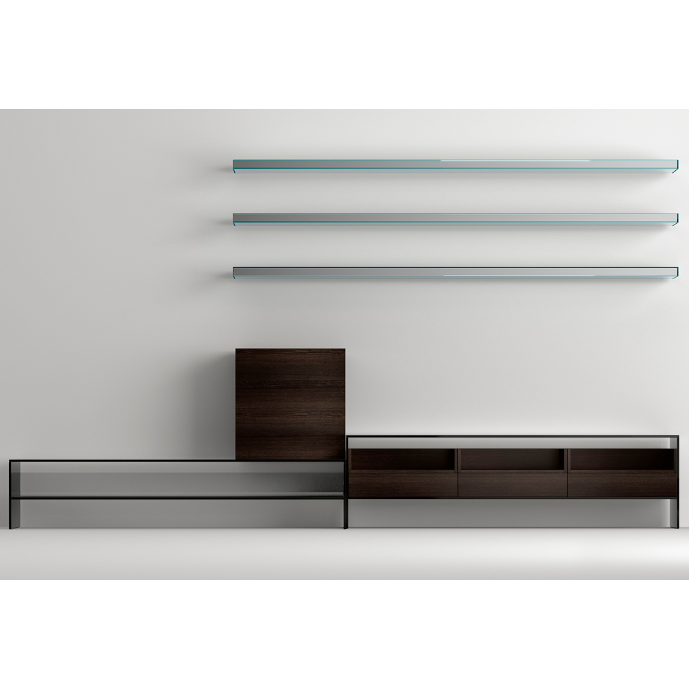 Mueble TV en cristal soldado y 3 baldas Made in Italy