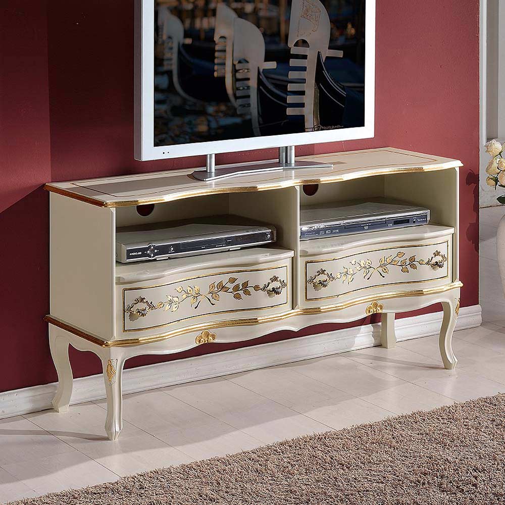 Mueble TV de madera con 2 cajones de estilo clásico fabricado en Italia.