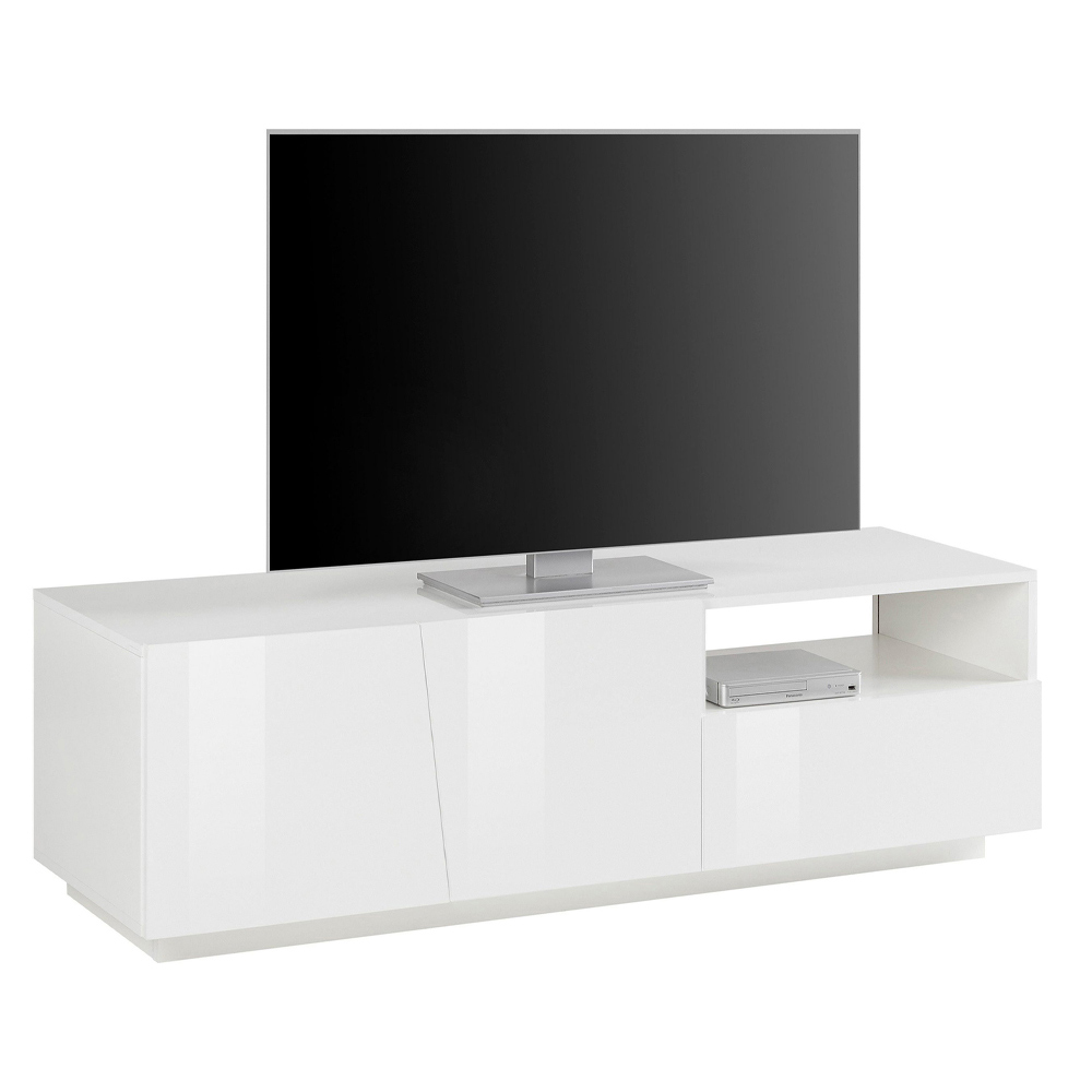 Mueble TV para salón fabricado en madera con 2 puertas, 1 cajón y compartimento abierto, made in Italy.