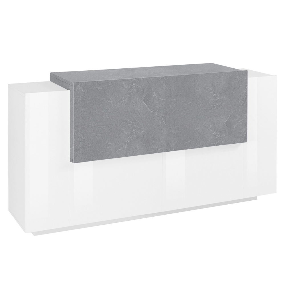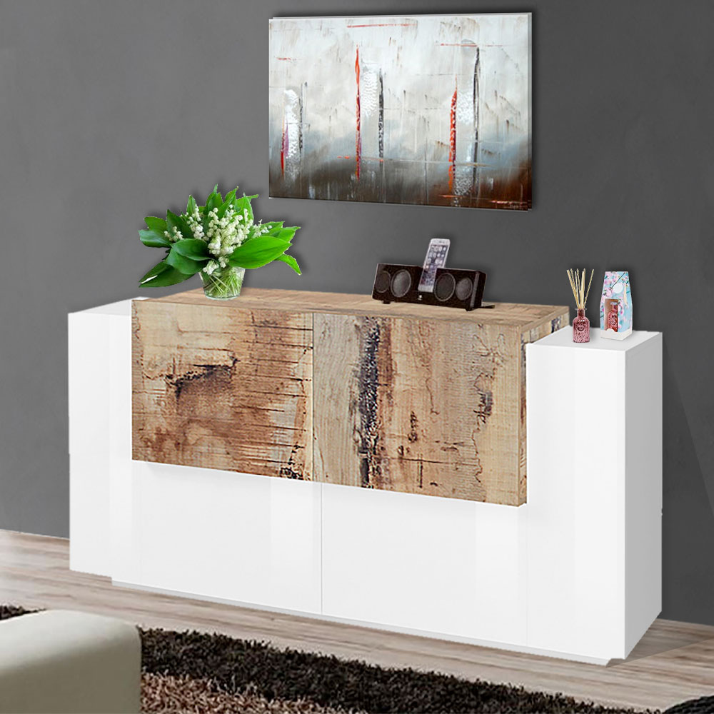 Madia 2+2 puertas en madera lacada blanco brillo y arce o pizarra, fabricado en Italia.