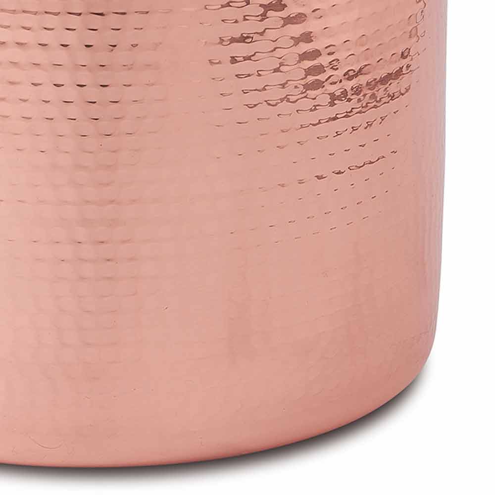 Olla alta con asas y tapa, fabricada artesanalmente en cobre martillado fabricado en Italia.