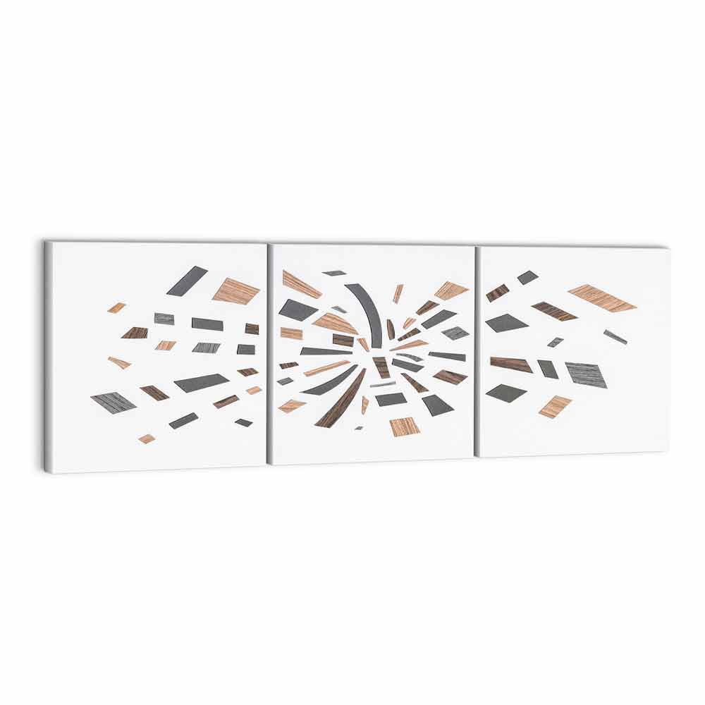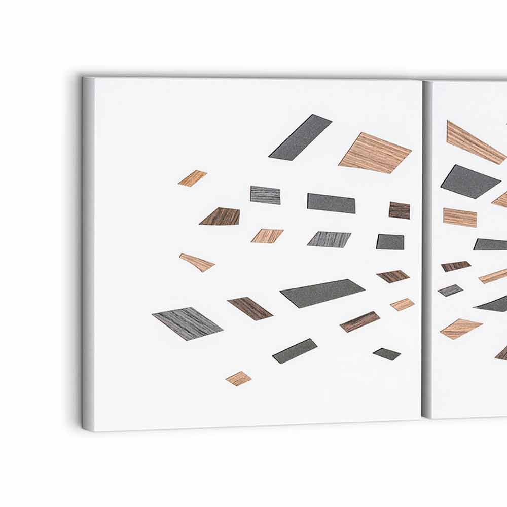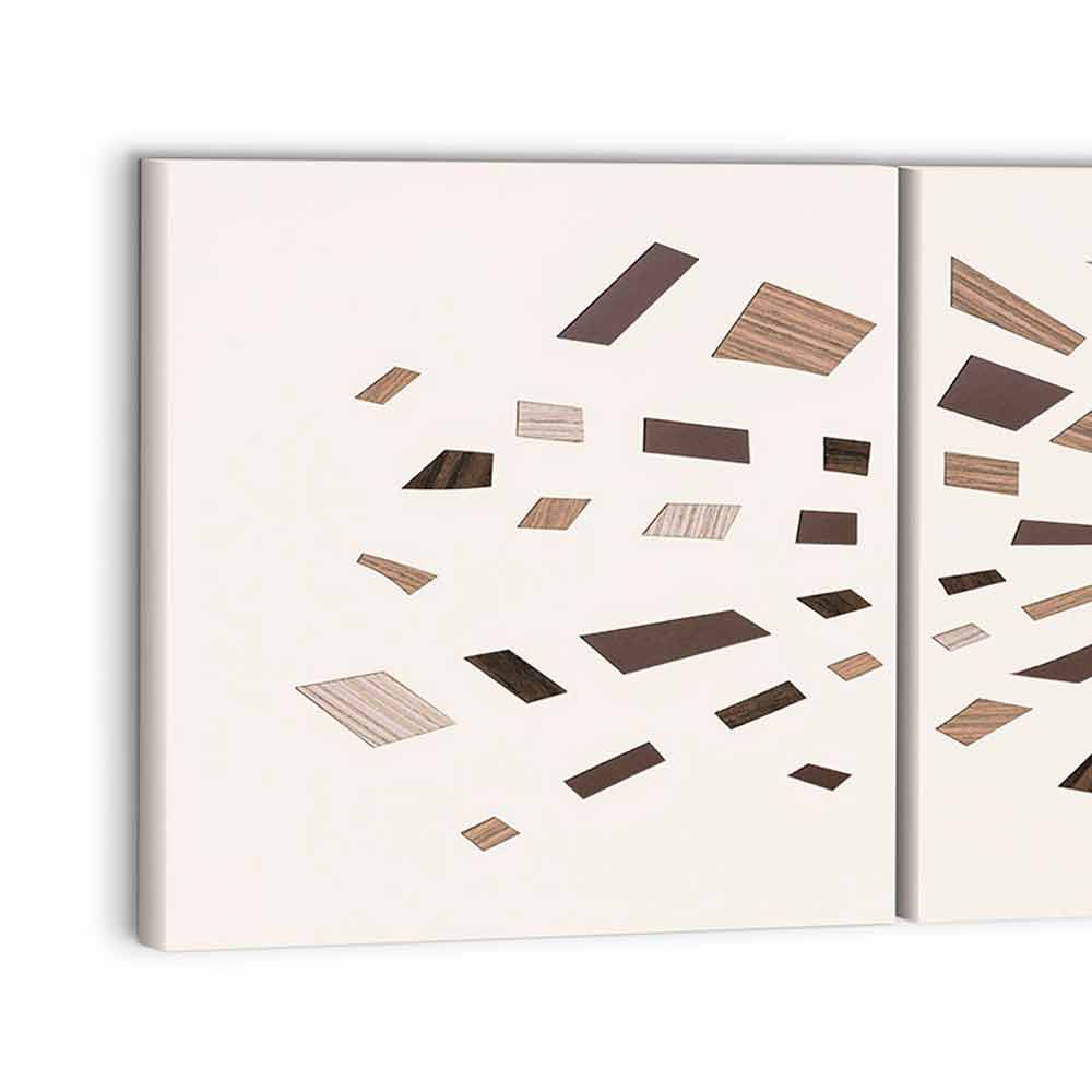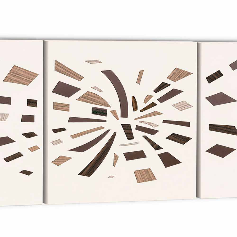 laminado y aplicaciones de madera tono sobre tono caracterizadas por diferentes esencias y tonalidades de color. Tres paneles unidos entre sí para dar vida a un resultado con un diseño maravillosamente equilibrado, así como la textura y los colores particulares que lo convierten en una verdadera obra de arte, un complemento perfecto para ambientes con una fuerte